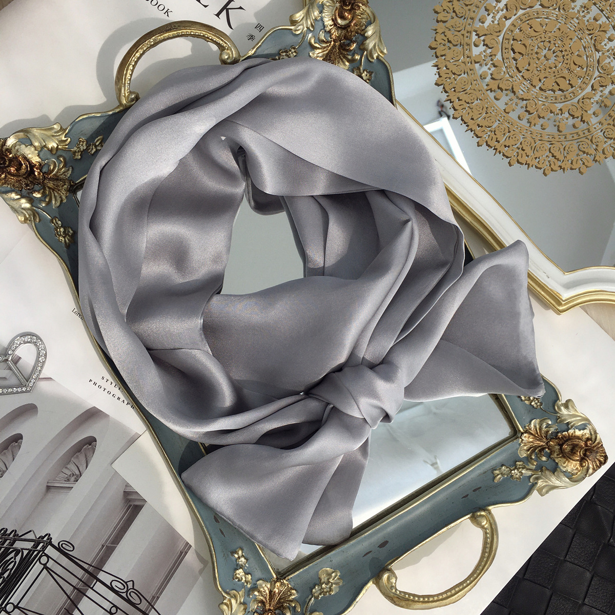솔리드 컬러 실크 스카프 긴 장식 스카프 여성 봄, 가을 셔츠 전문 100% 뽕나무 실크 스트리머 스카프스토어 가기