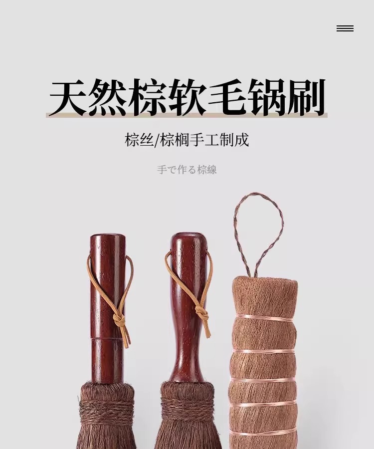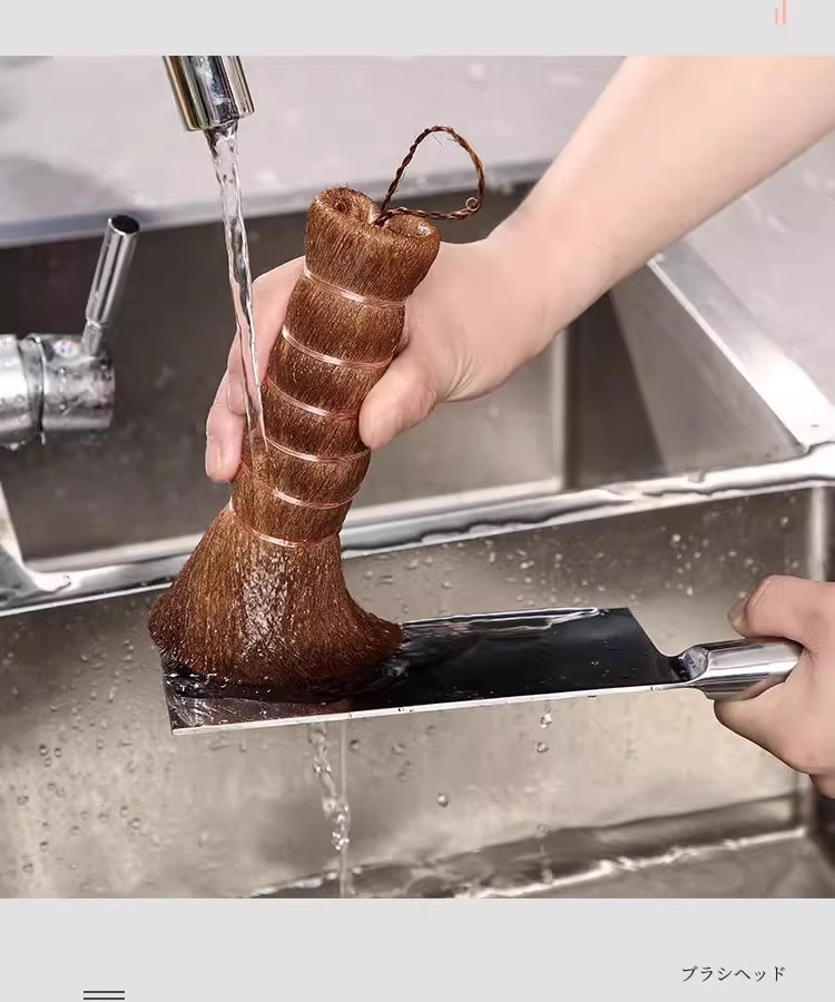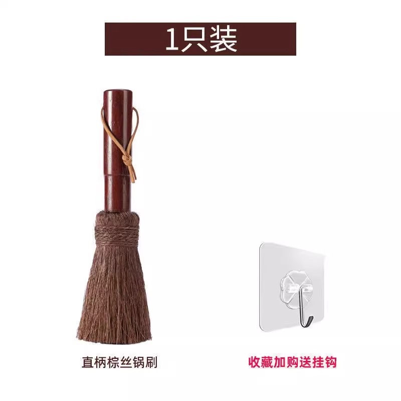 • 냄비 손잡이가 있는 갈색 실크 브러시 1개 [프리 후크*1] 천연 야자 소재