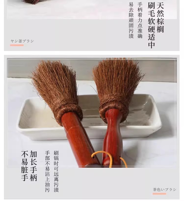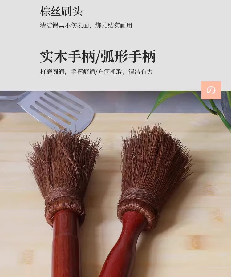 • 냄비 손잡이가 있는 갈색 실크 브러시 2개 [후크 2개 포함] 천연 야자 소재