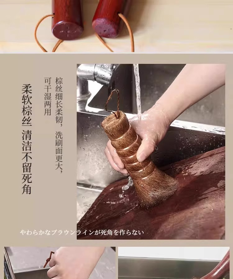 • 냄비 손잡이가 있는 갈색 실크 브러시 4개 [무료 후크*4] 천연 야자 소재