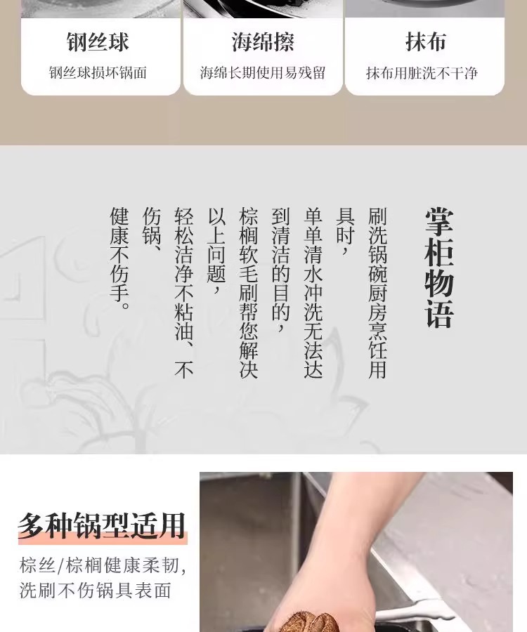 냄비솔 코코넛섬유 브러쉬 전통 코코넛섬유 설거지솔 가정용 냄비솔