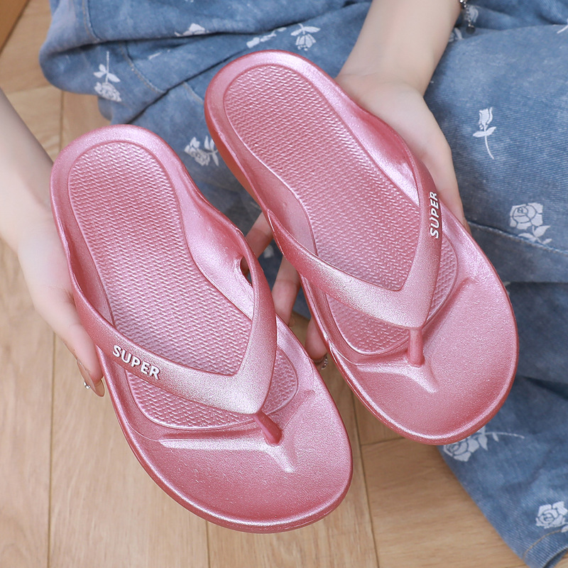 여름 여성을 위한 인기 있는 달콤한 외부 패션 슬리퍼, 통기성 한국식 로우 힐, 방수 및 미끄럼 방지 해변 휴가 슬리퍼