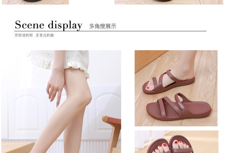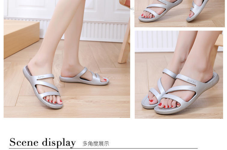여름 여성을 위한 인기 있는 달콤한 외부 패션 슬리퍼, 통기성 한국식 로우 힐, 방수 및 미끄럼 방지 해변 휴가 슬리퍼스토어 가기