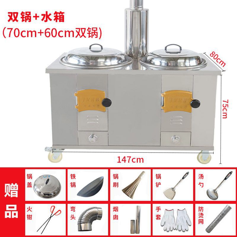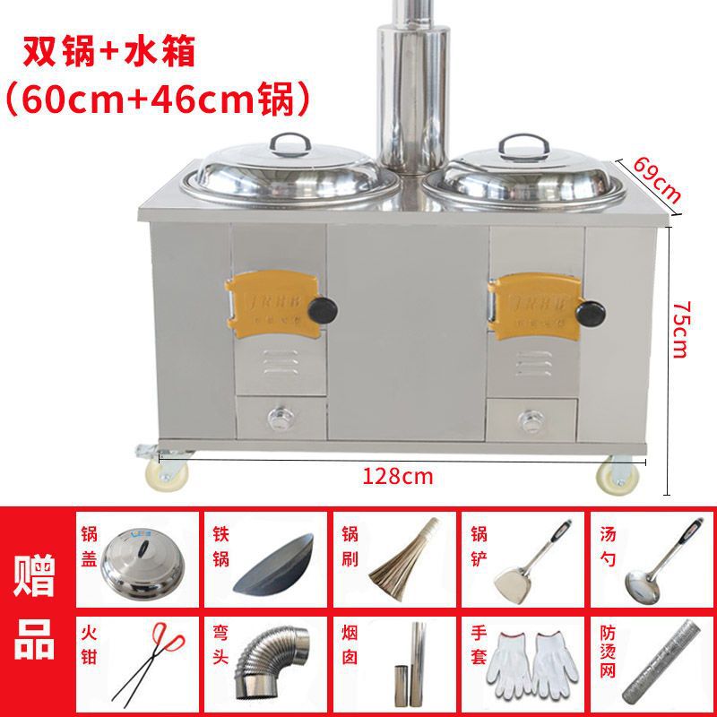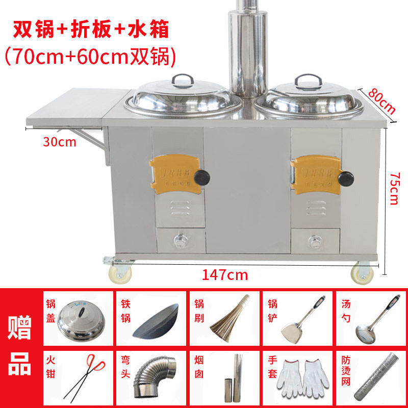 2025년형 농촌 장작 스토브 신형 더블 스토브 장작 스토브 스테인레스 스틸 조리대 두꺼운 장작 스토브