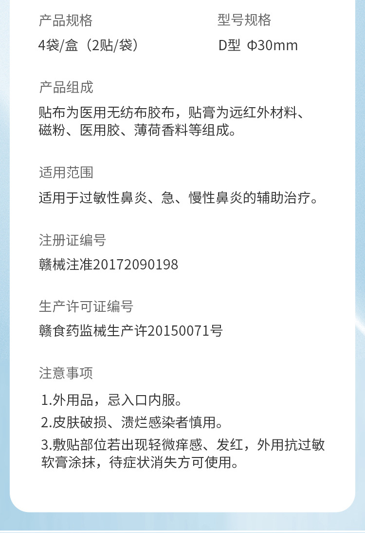 Haishi Hainuo 적외선 비강 민감성 패치 알레르기성 비염 급성 및 만성 비염 어린이 및 성인을 위한 비강 패치 의료 등급