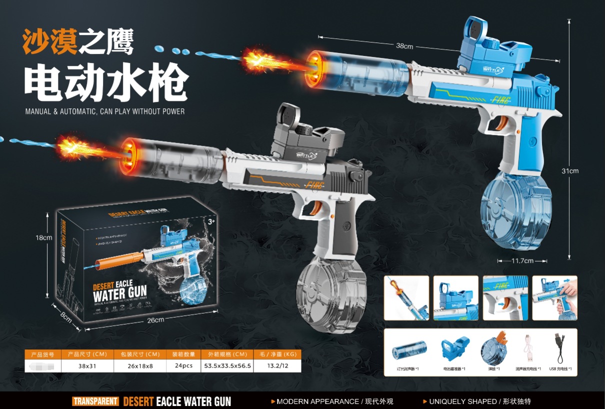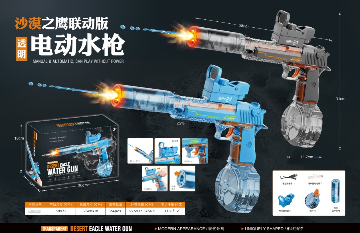 • [블루 앤 화이트 모델] 연동 샌드 이글 전기 물총 + 투명 화재 소음기