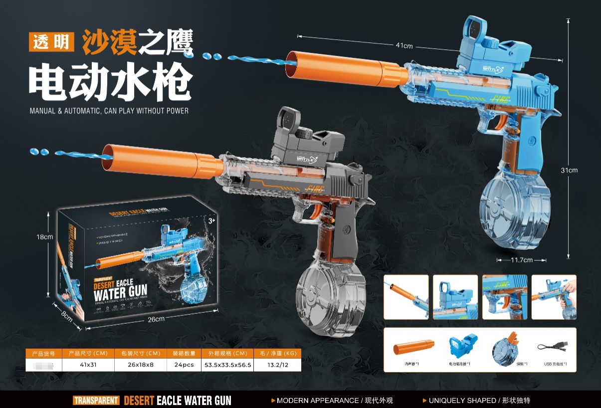 • [흑백 모델] 연동 샌드 이글 전기 물총 + 투명 화재 소음기