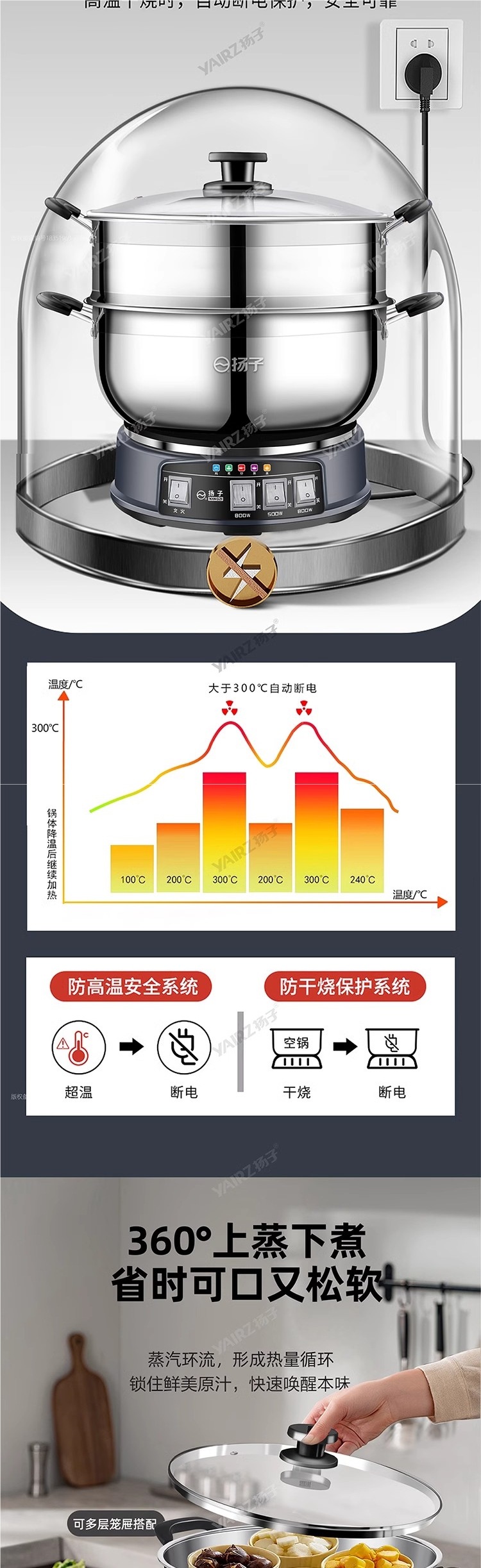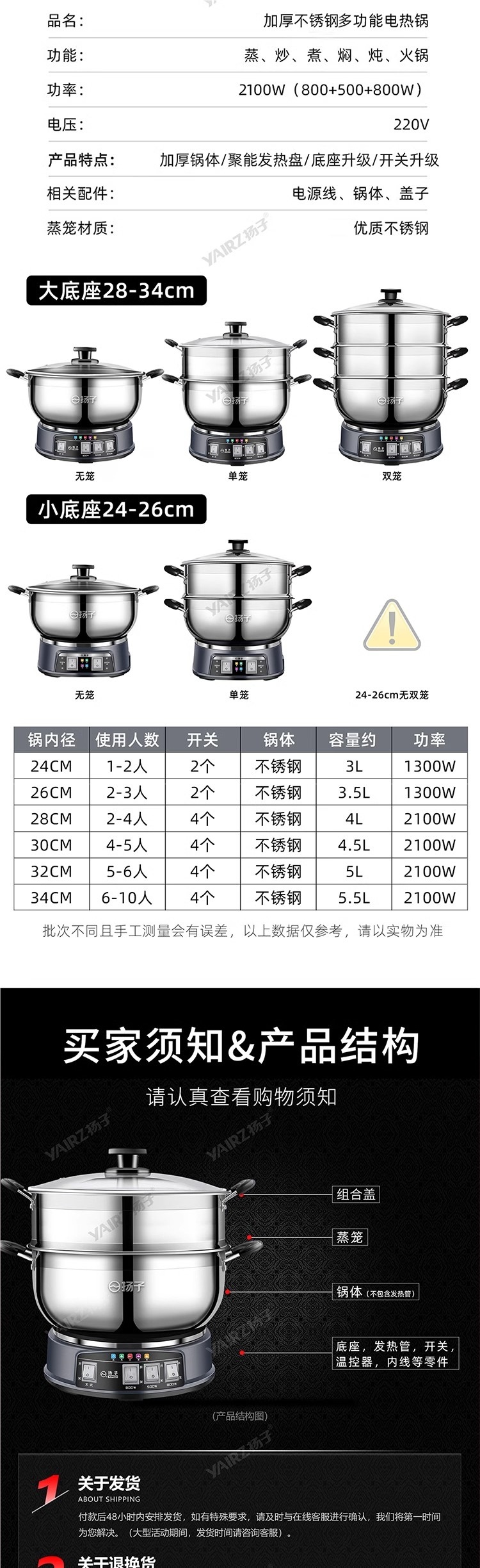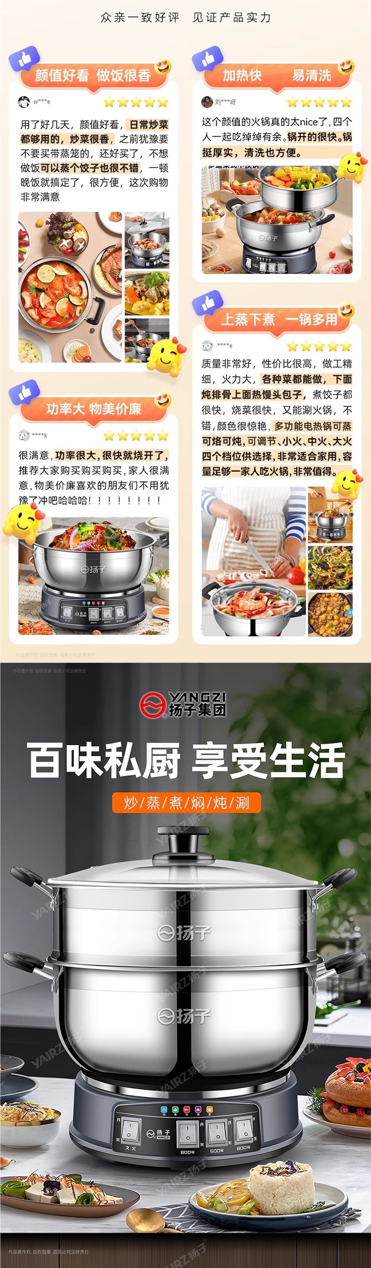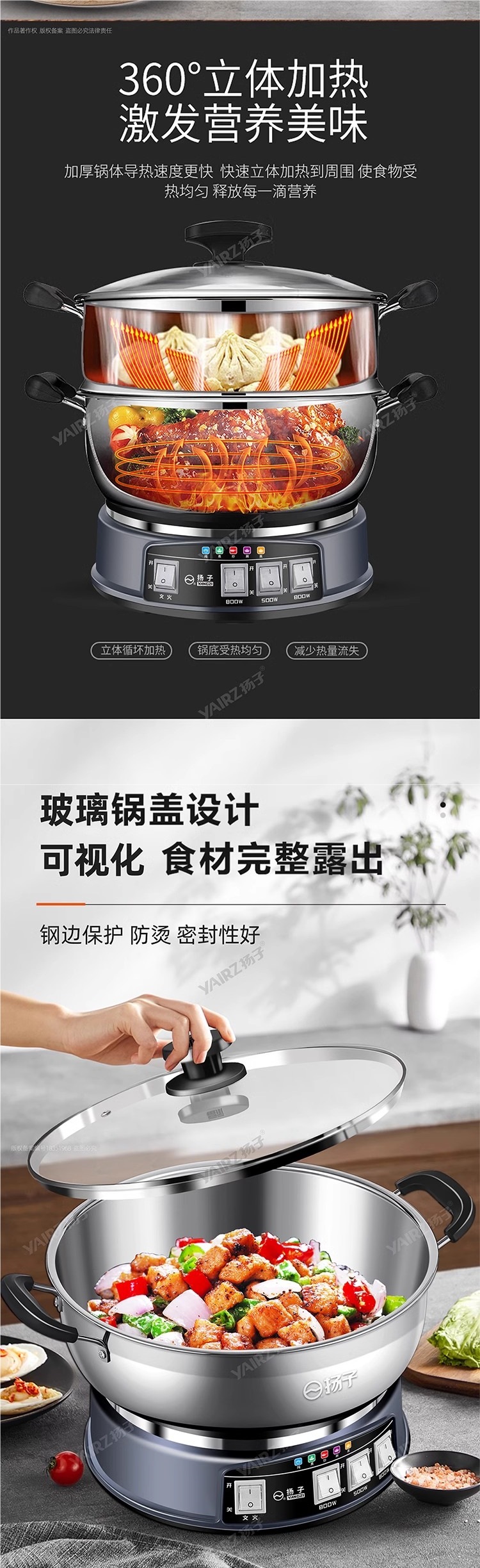 전기 냄비 다기능 가정용 스테인레스 스틸 전기 냄비 요리 및 찜 일체형 전기 찜기 새로운 전기 냄비스토어 가기