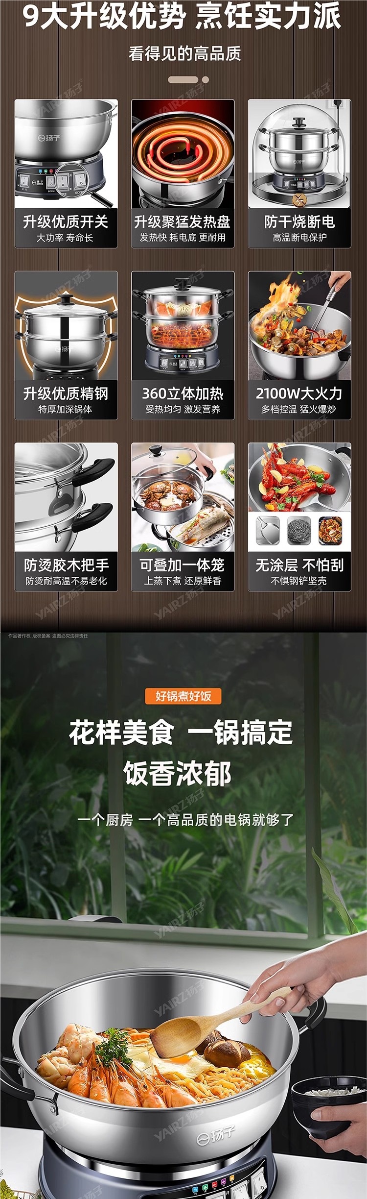 전기 냄비 다기능 가정용 스테인레스 스틸 전기 냄비 요리 및 찜 일체형 전기 찜기 새로운 전기 냄비