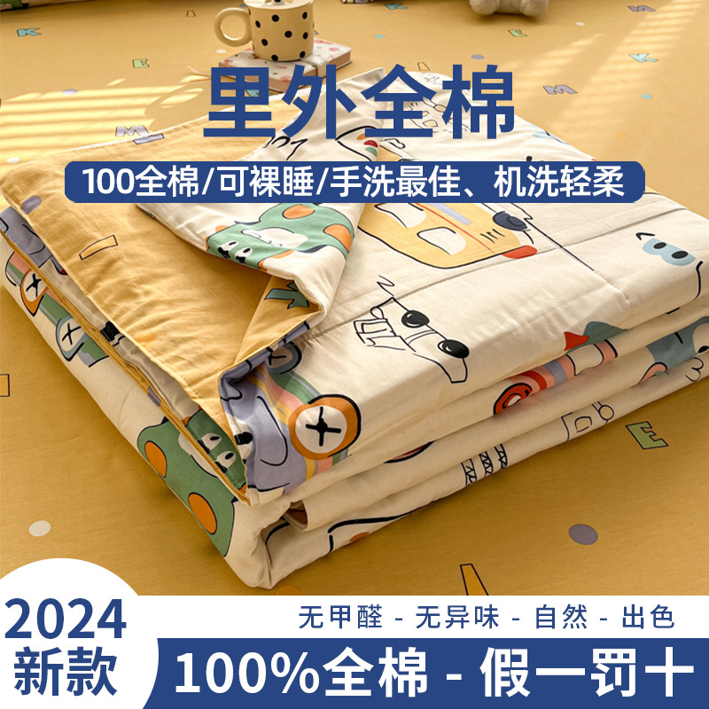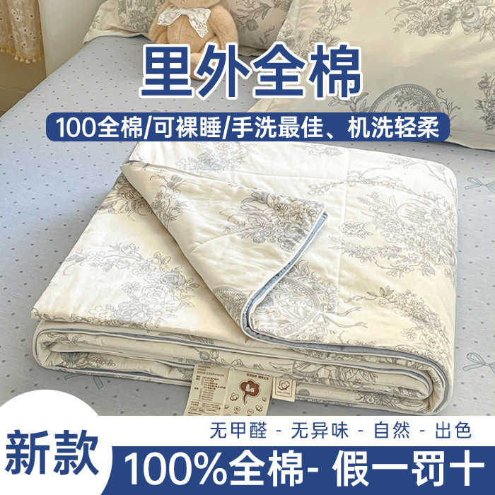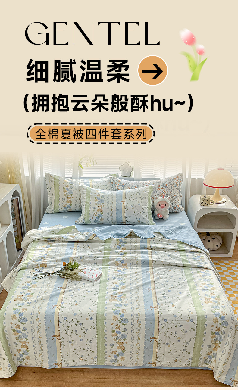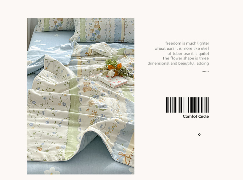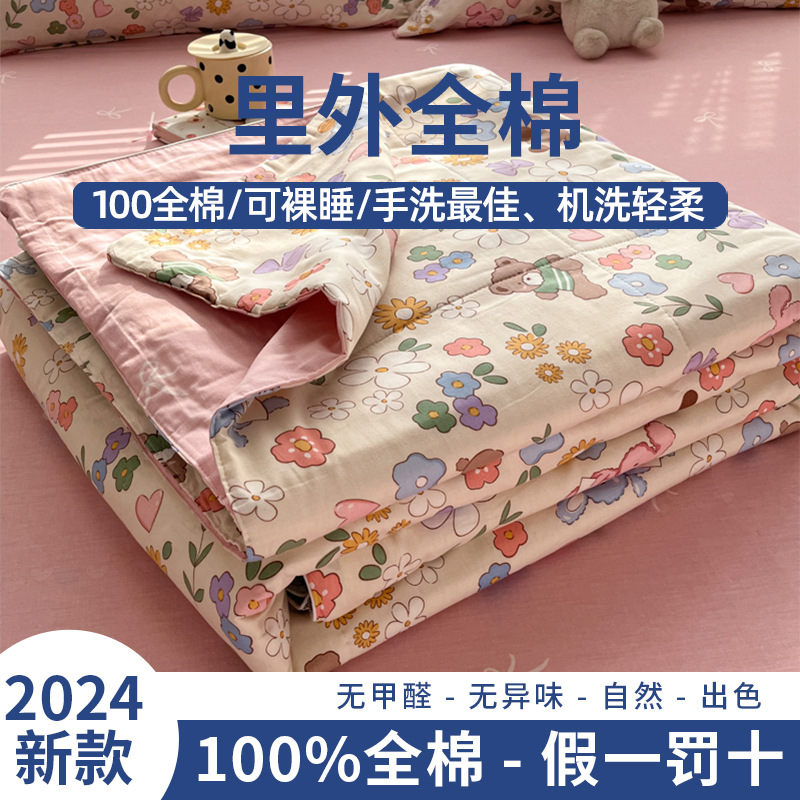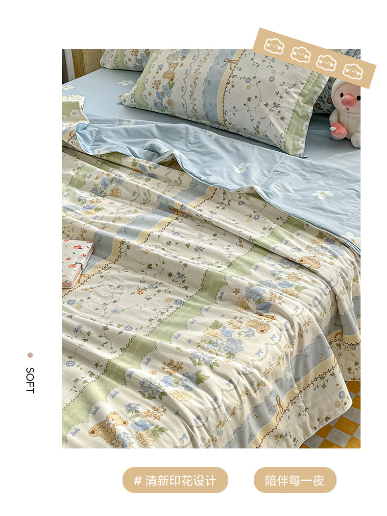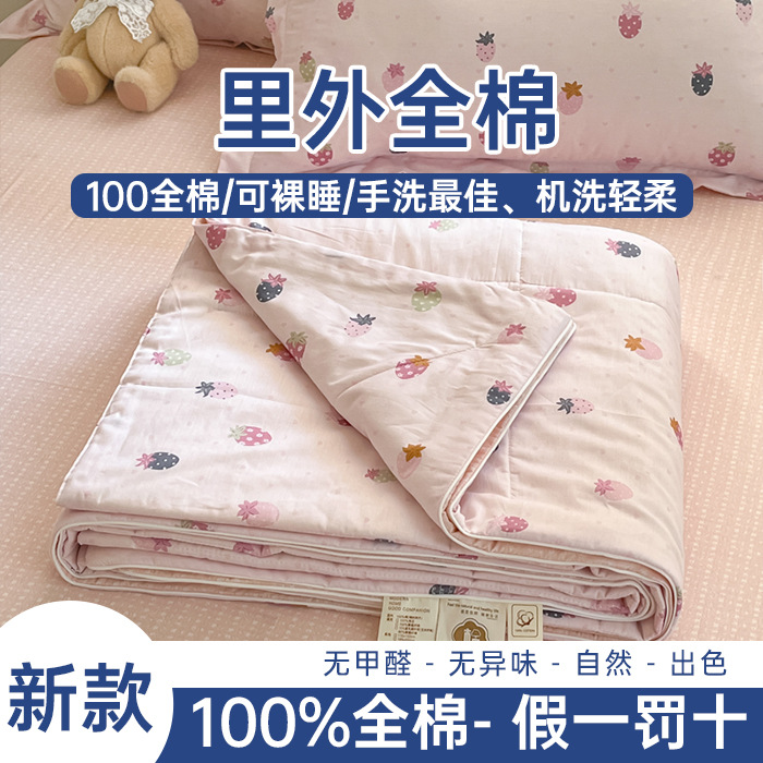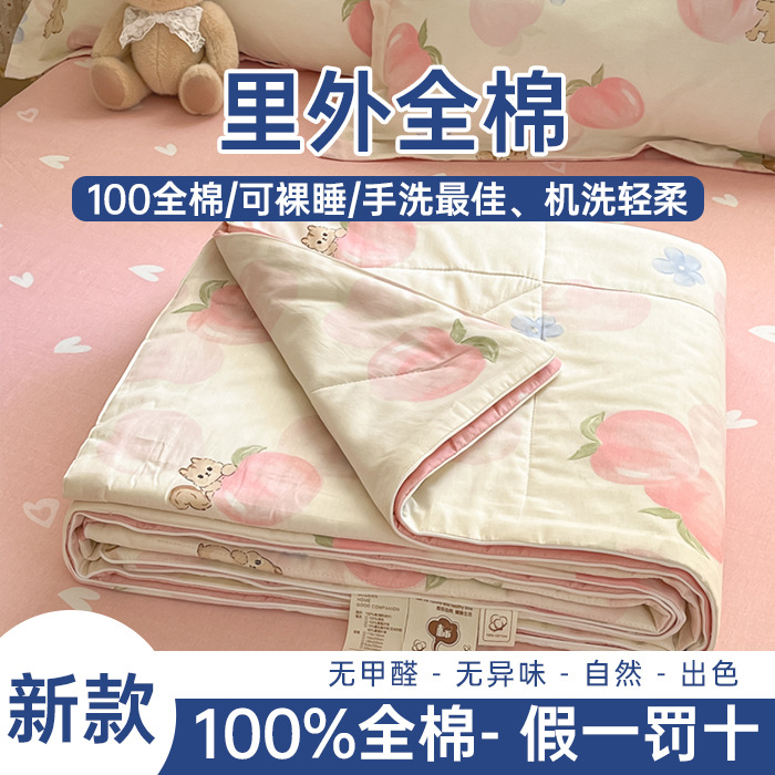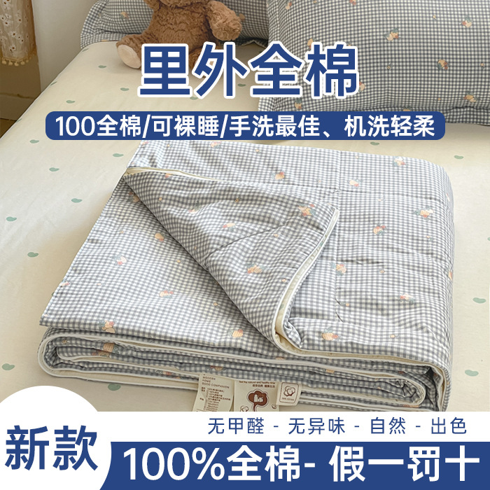 새로운 클래스 A 순면 여름 이불 4피스 세트 순면 신장 면 여름 이불 여름 세탁기로 세탁 가능한 어린이 에어컨 이불 4스토어 가기