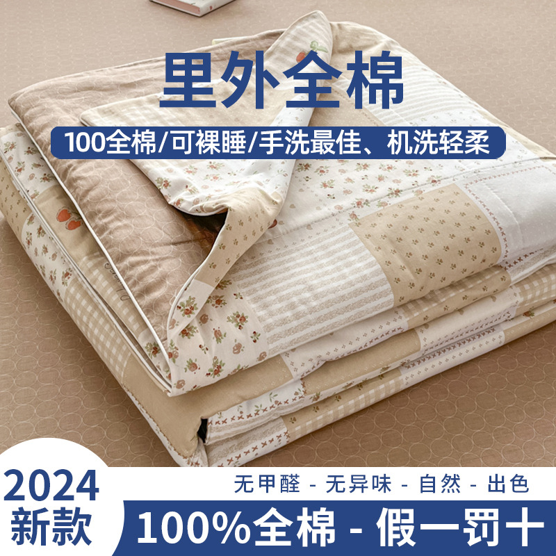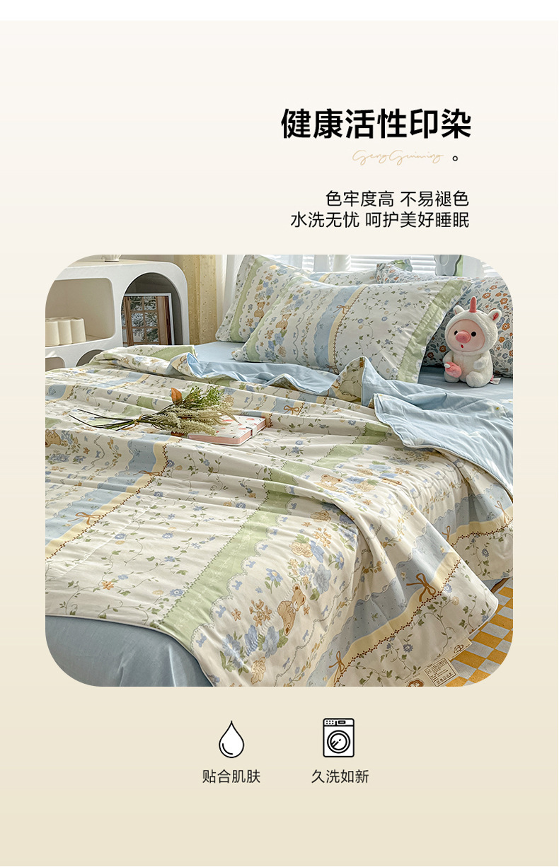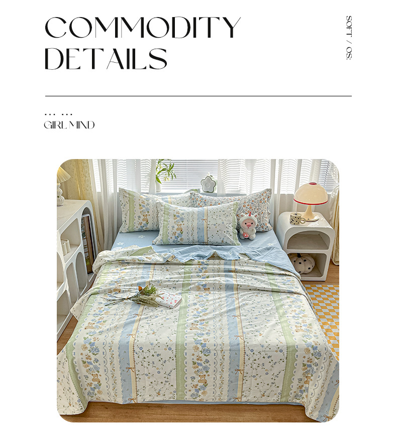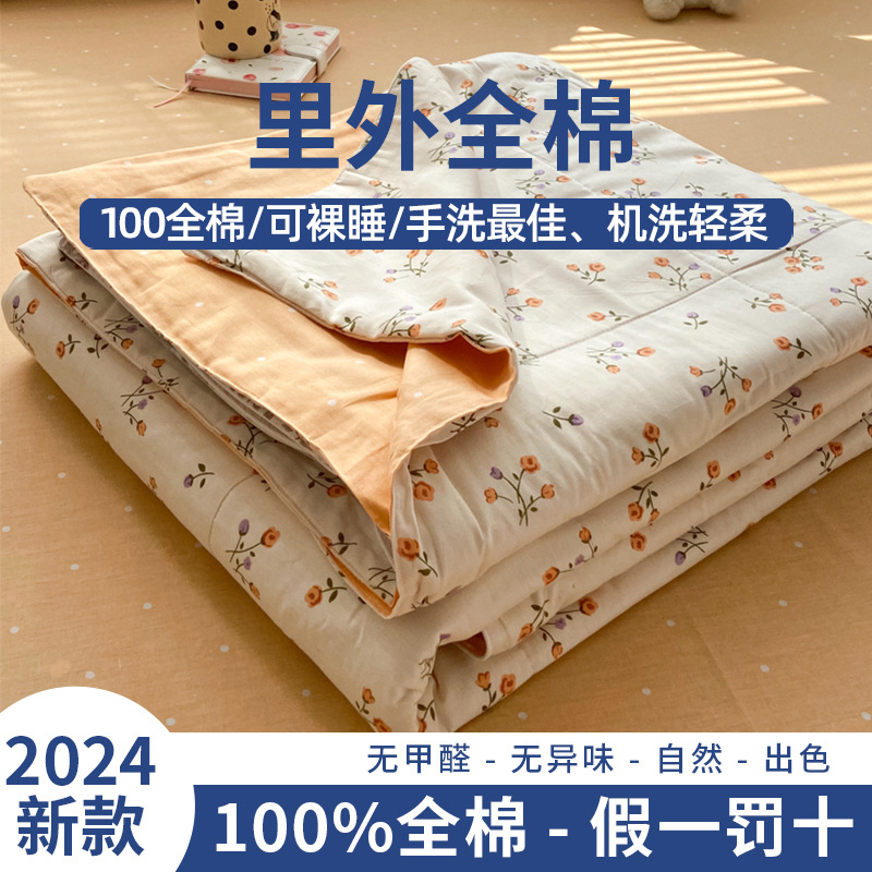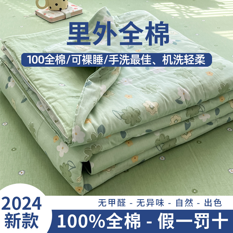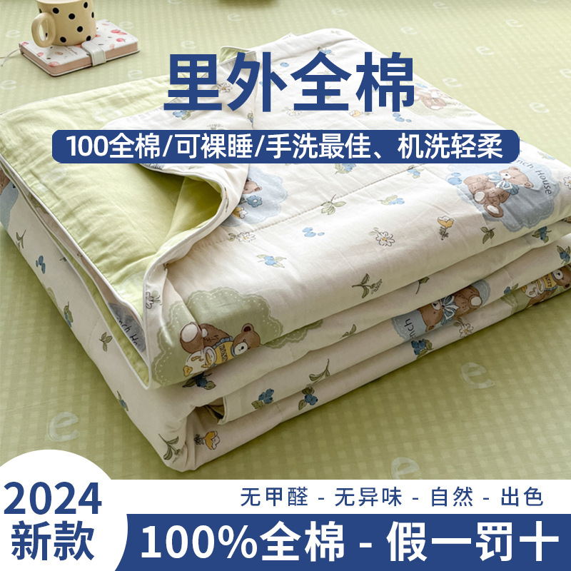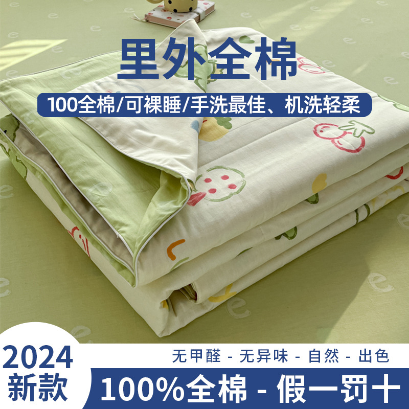 새로운 클래스 A 순면 여름 이불 4피스 세트 순면 신장 면 여름 이불 여름 세탁기로 세탁 가능한 어린이 에어컨 이불 4스토어 가기