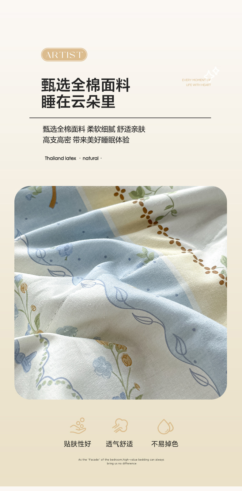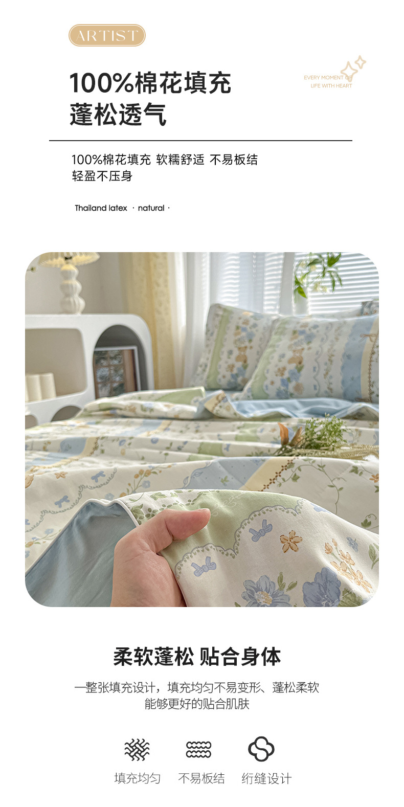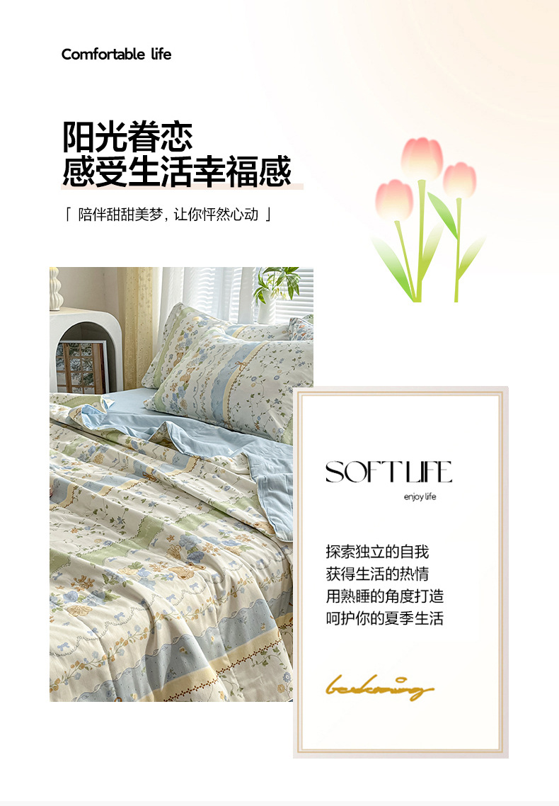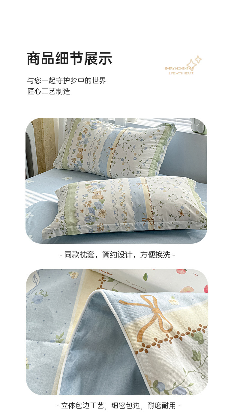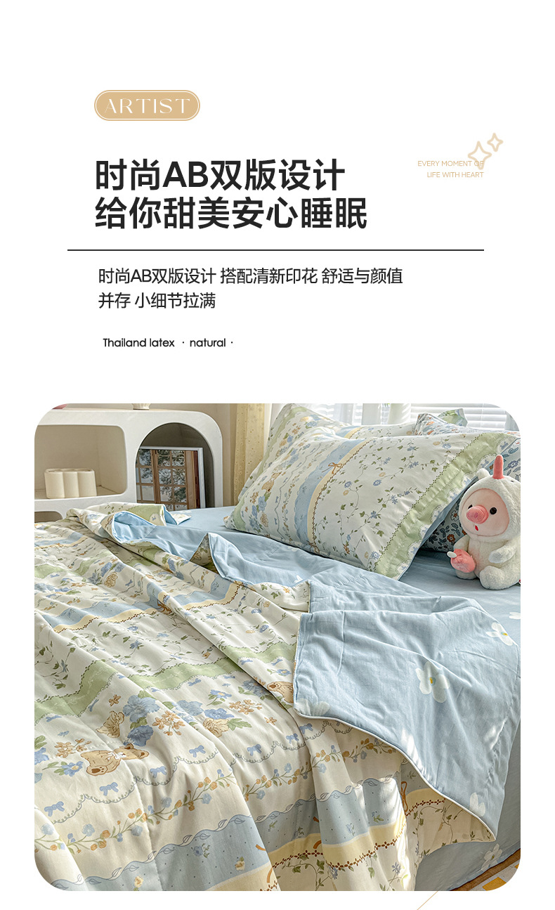 새로운 클래스 A 순면 여름 이불 4피스 세트 순면 신장 면 여름 이불 여름 세탁기로 세탁 가능한 어린이 에어컨 이불 4스토어 가기