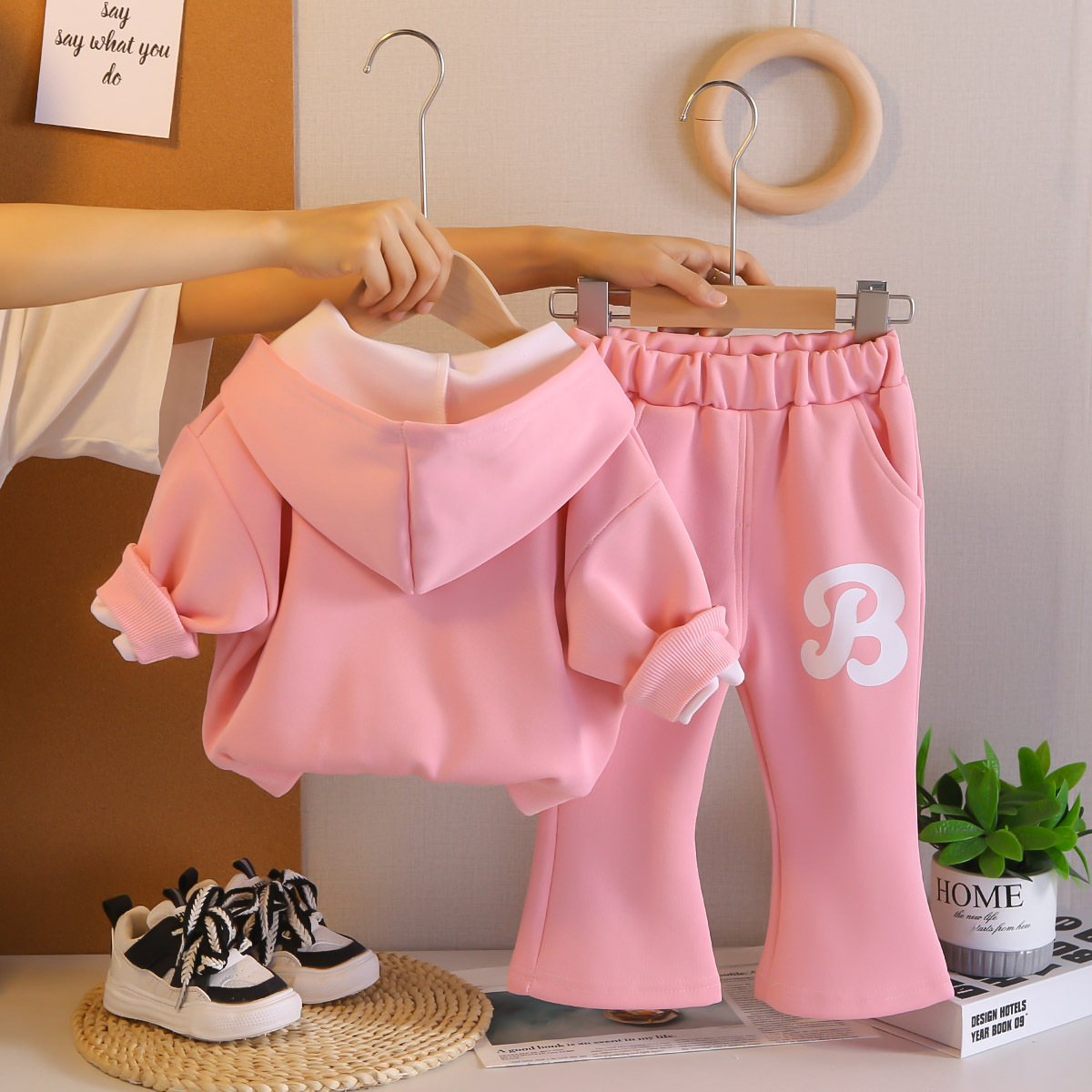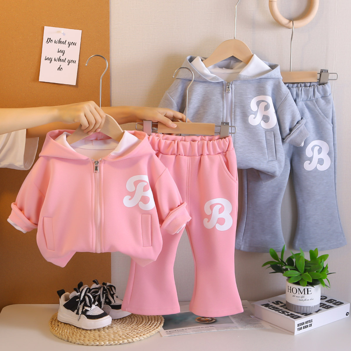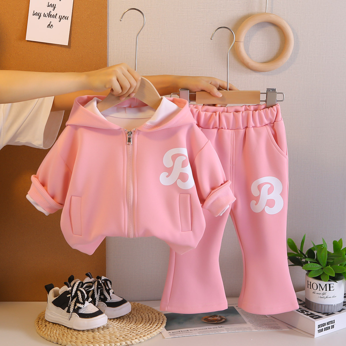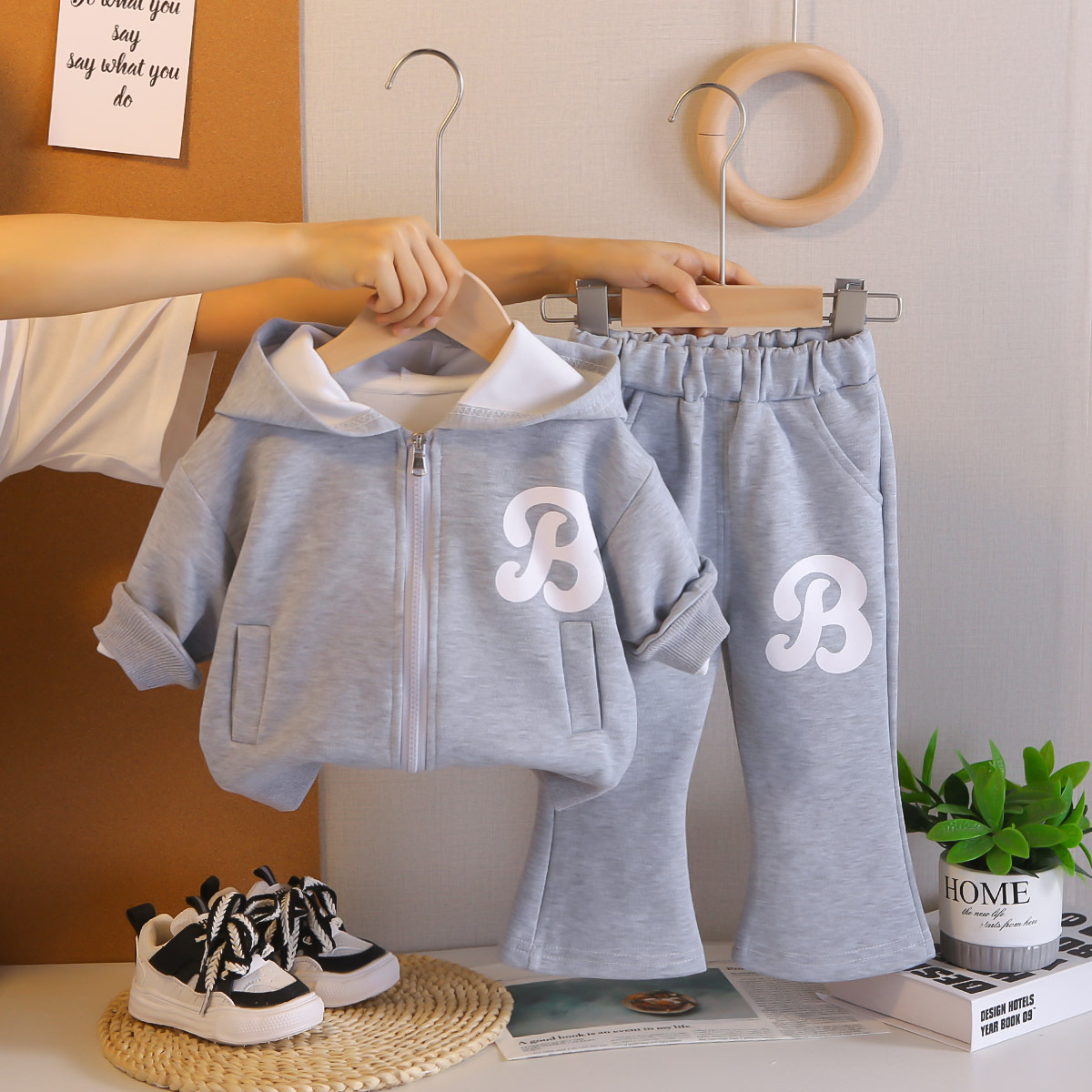 어린 소녀 캐주얼 운동복 2025 봄과 가을 새로운 스타일 5 아기 소녀 후드 지퍼 셔츠 투피스 세트 1-3 세 아동 의류스토어 가기