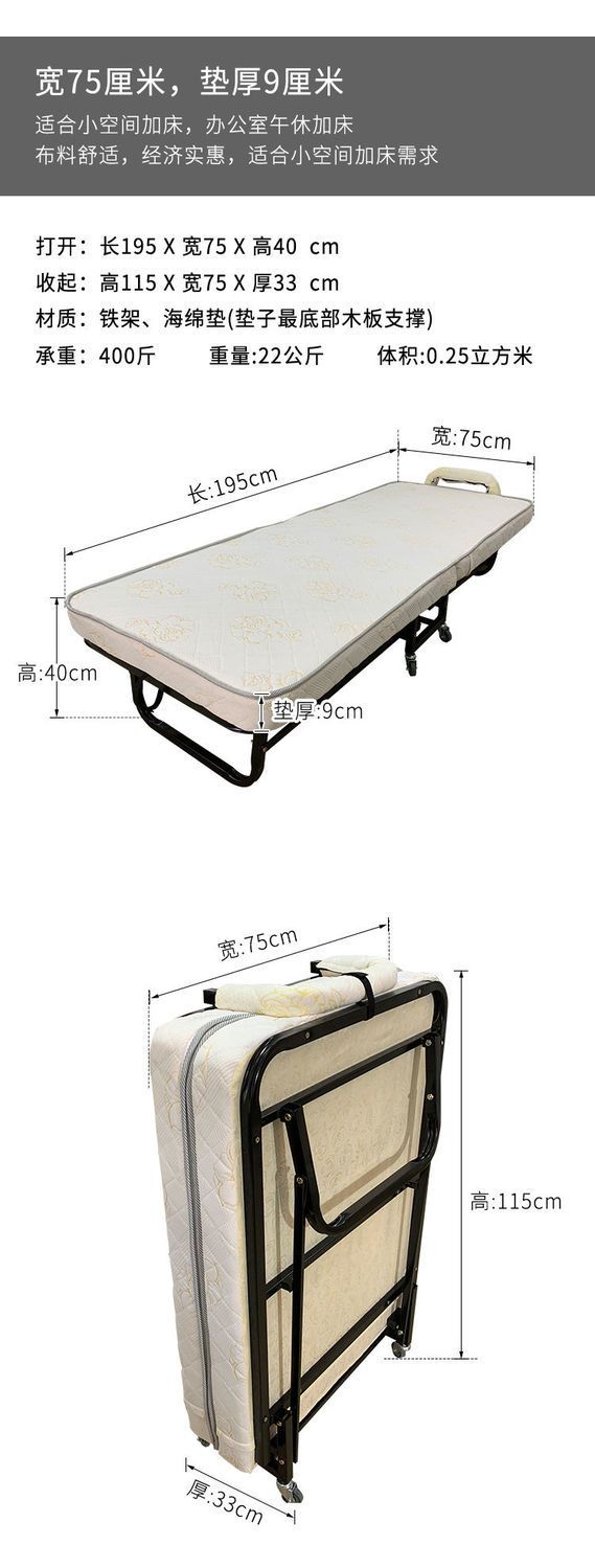 싱글 및 더블 접이식 침대 홈 오피스 점심 시간 낮잠 임시 침대 호텔 추가 침대 작은 침대 간단하고 휴대 가능스토어 가기