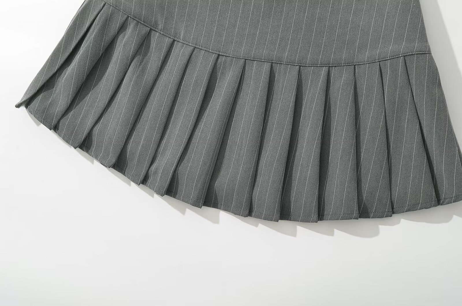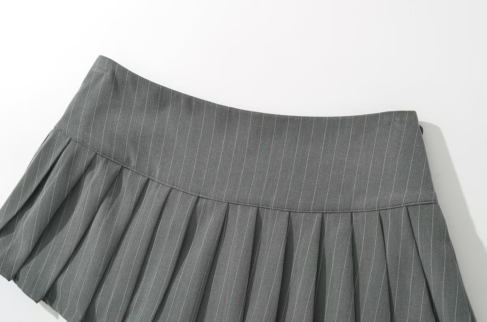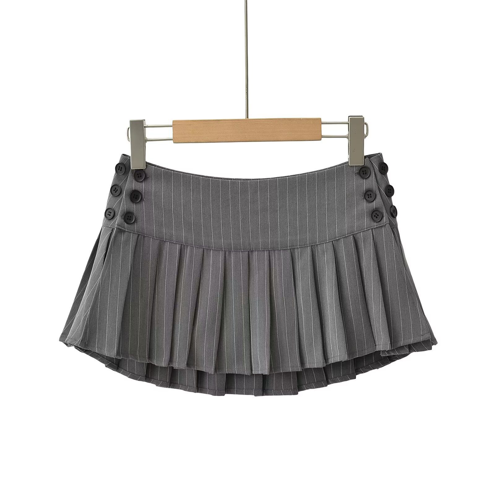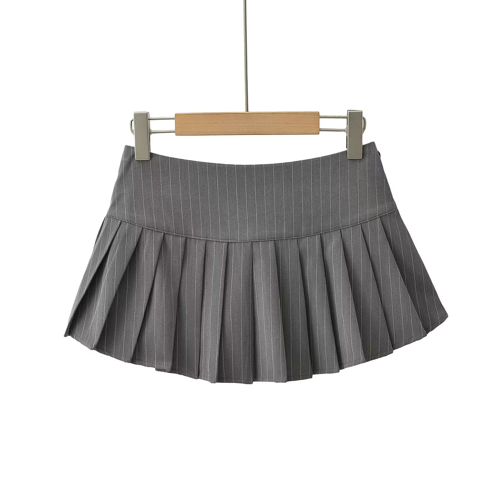 여성을위한 미국 대학 스타일 순수한 욕망 핀 스트라이프 미니 스커트 2025 여름 섹시 로우 허리 조절 가능한 플리츠 스커트
