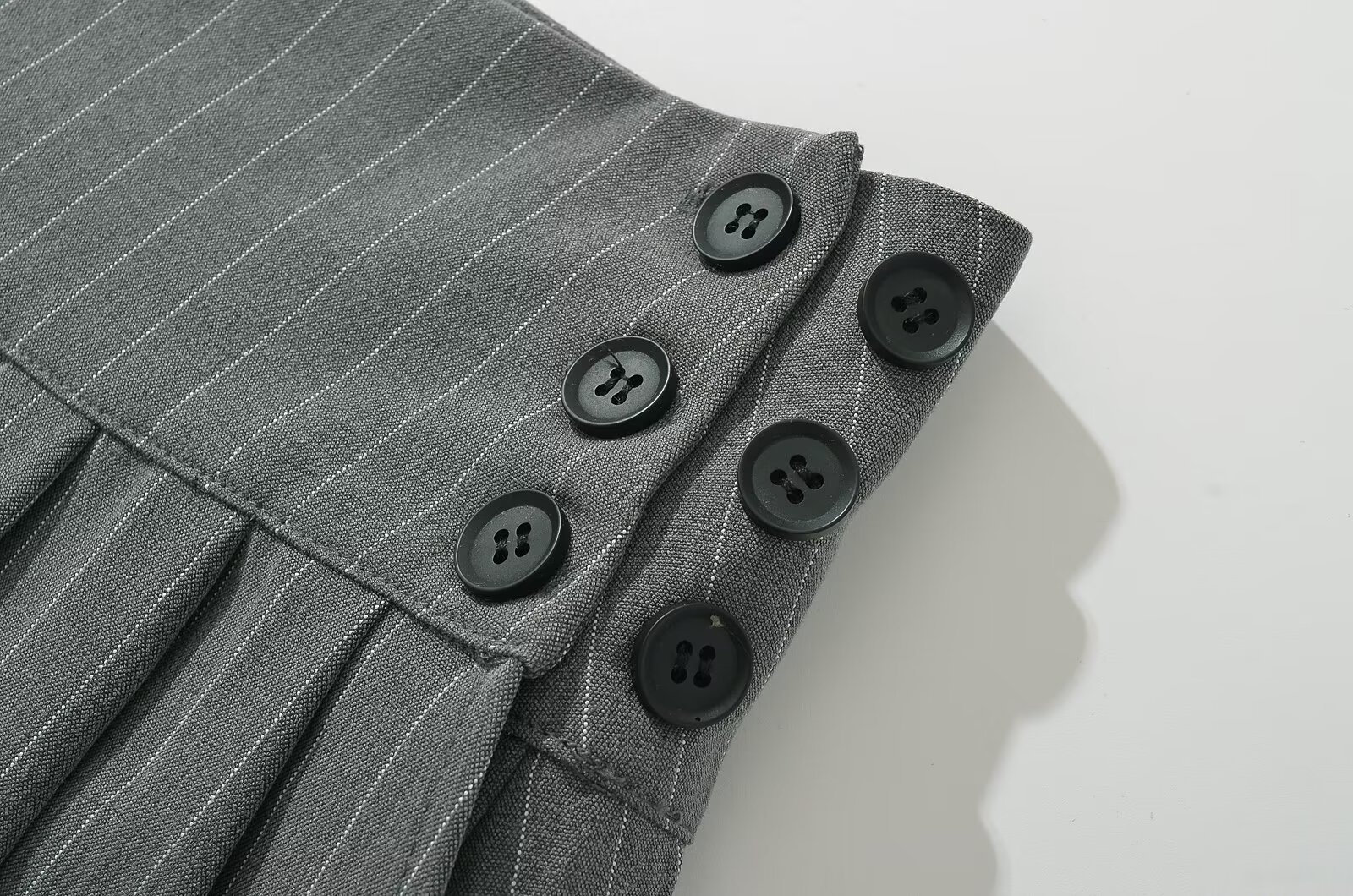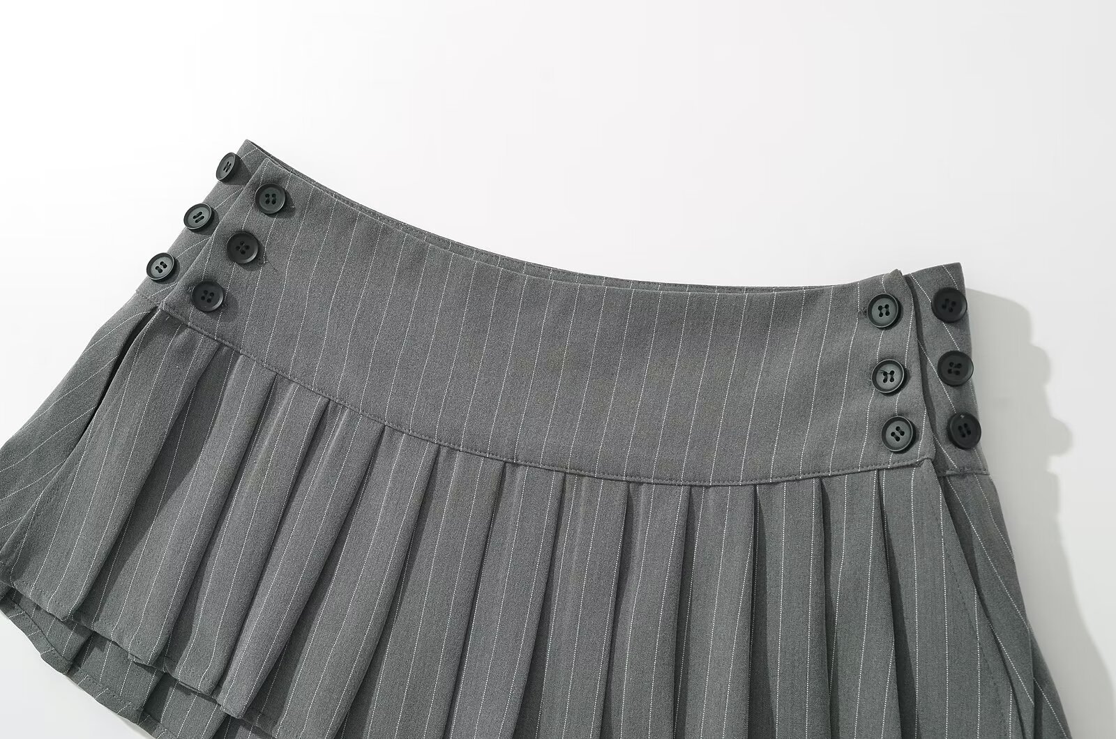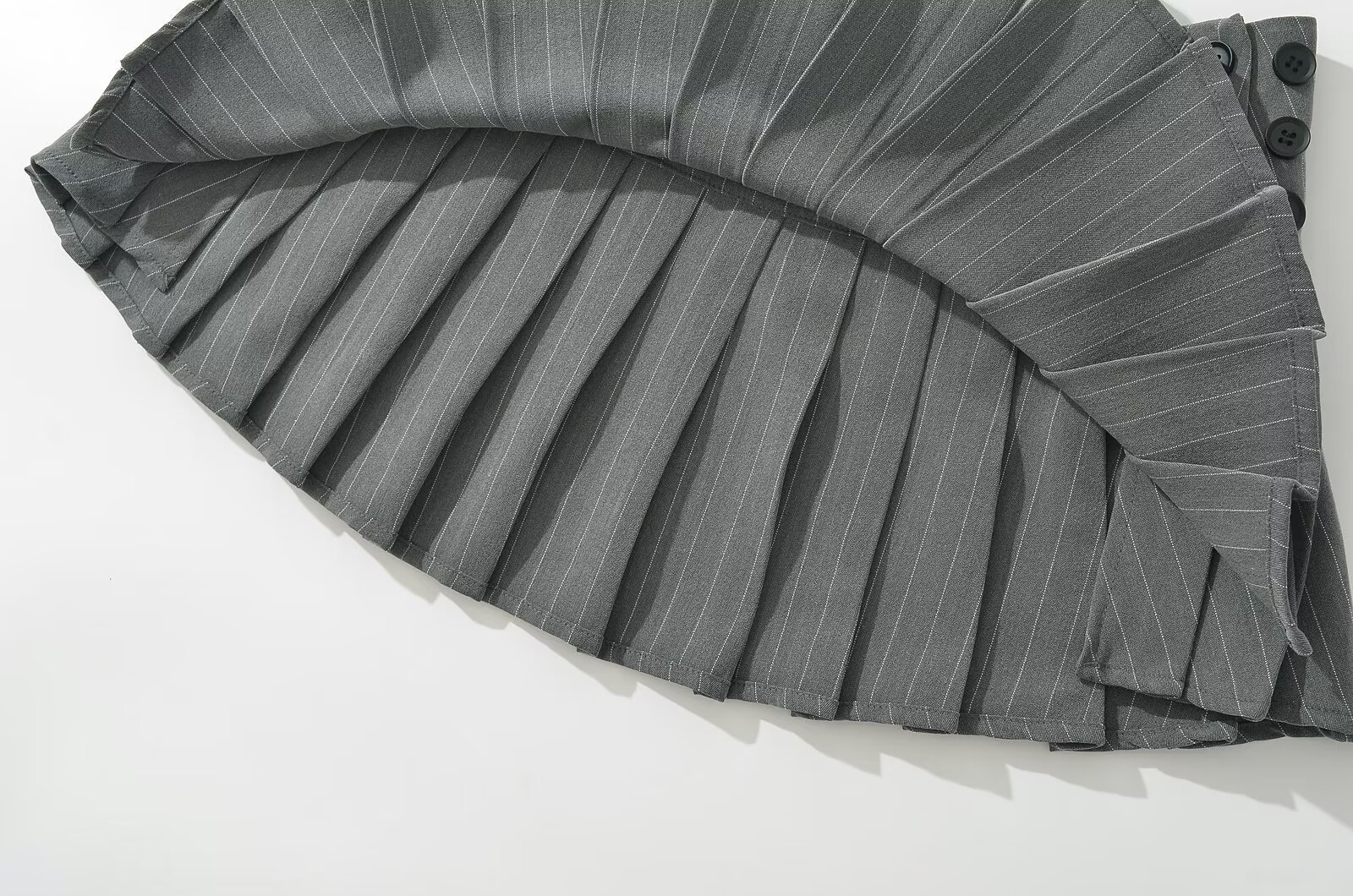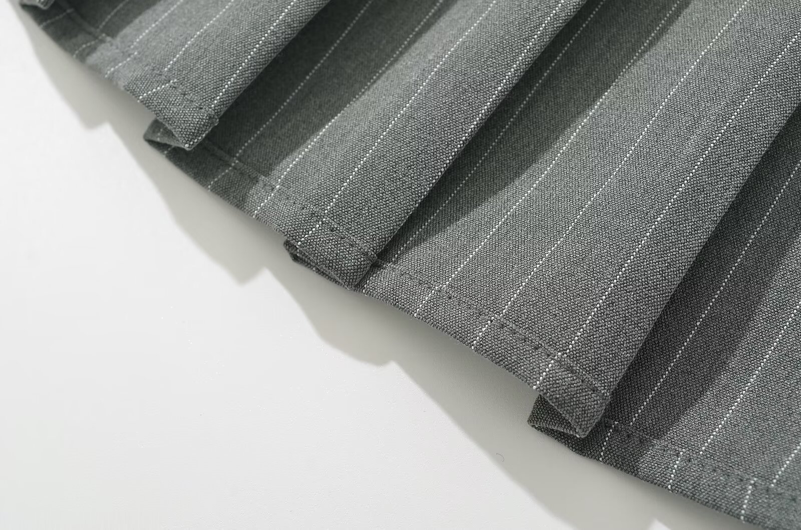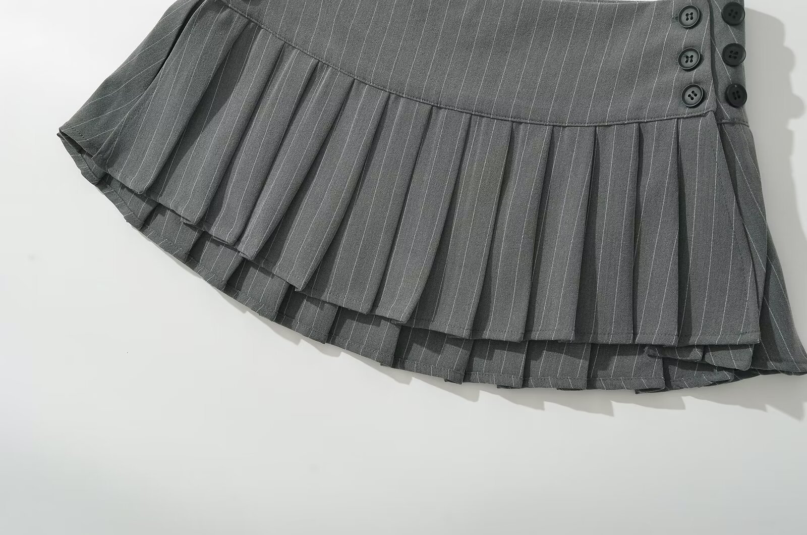 여성을위한 미국 대학 스타일 순수한 욕망 핀 스트라이프 미니 스커트 2025 여름 섹시 로우 허리 조절 가능한 플리츠 스커트