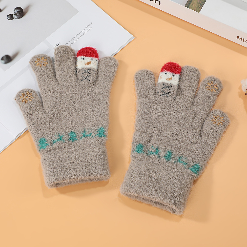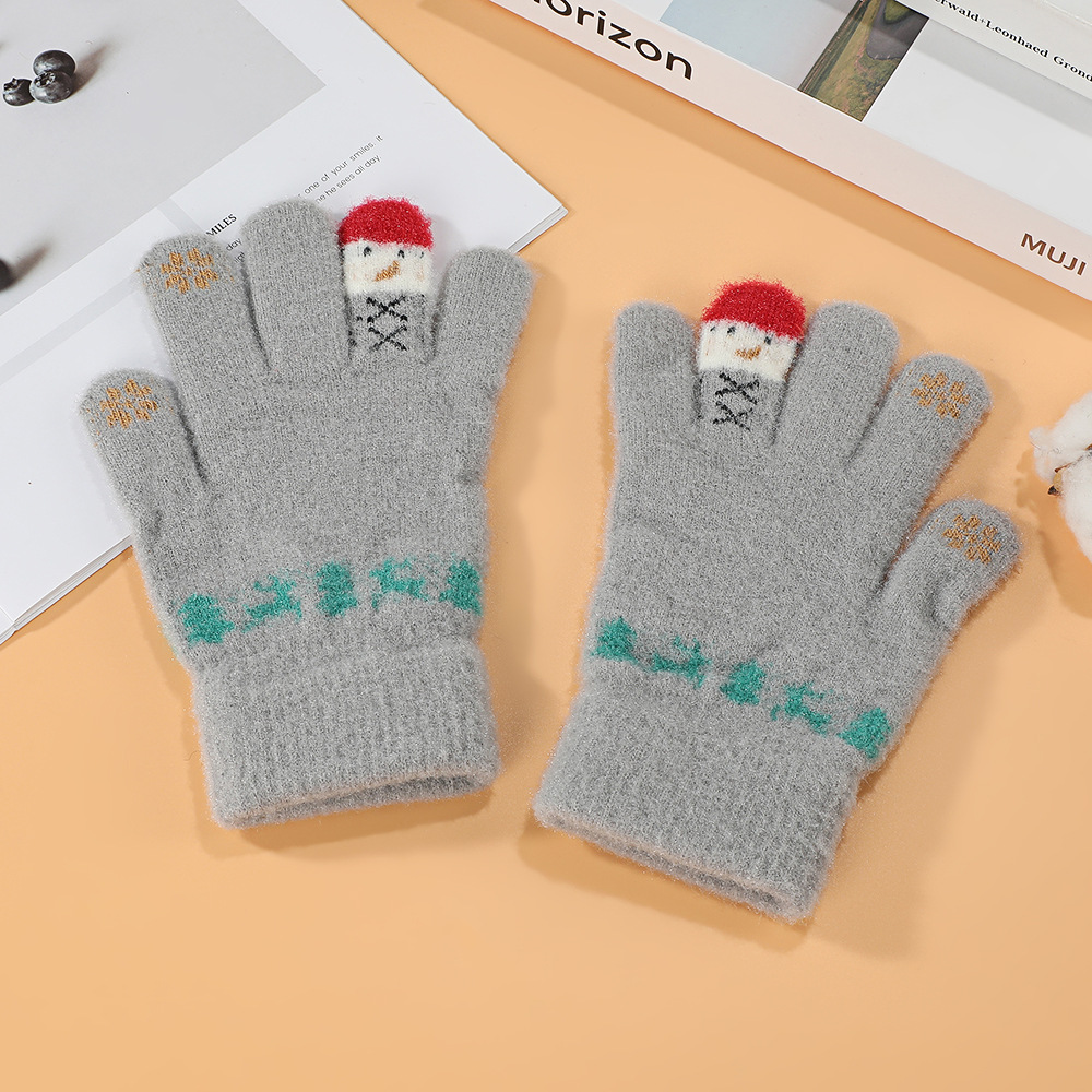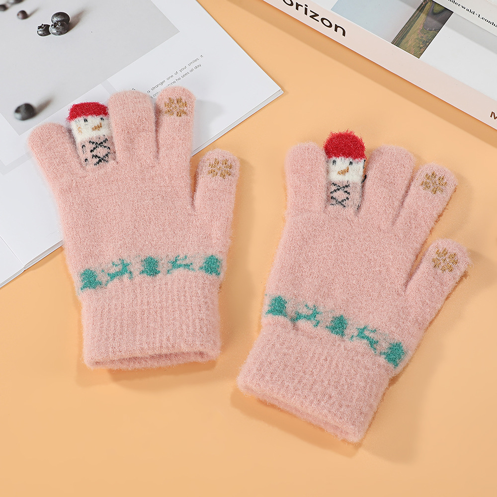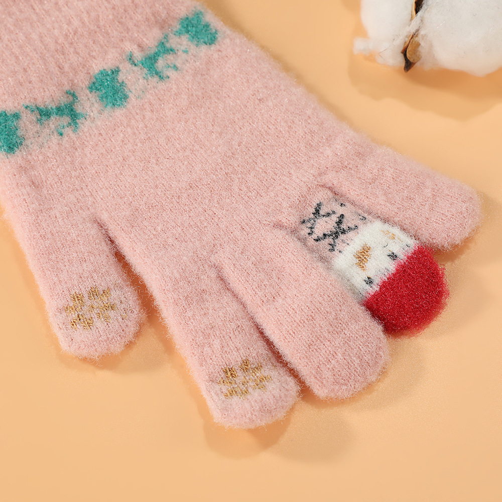 한국어 버전 손가락 곰 터치 스크린 빨간색 손가락 장갑 여학생을위한 크리 에이 티브 귀여운 두꺼운 플러시 사이클링 따뜻한 장갑