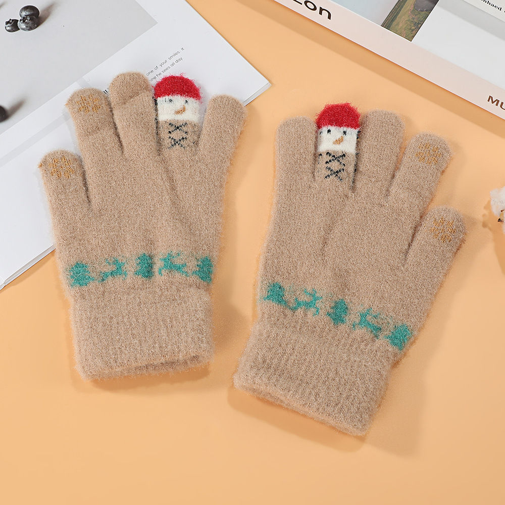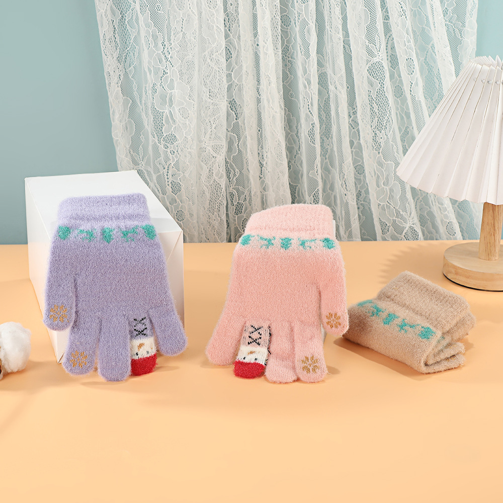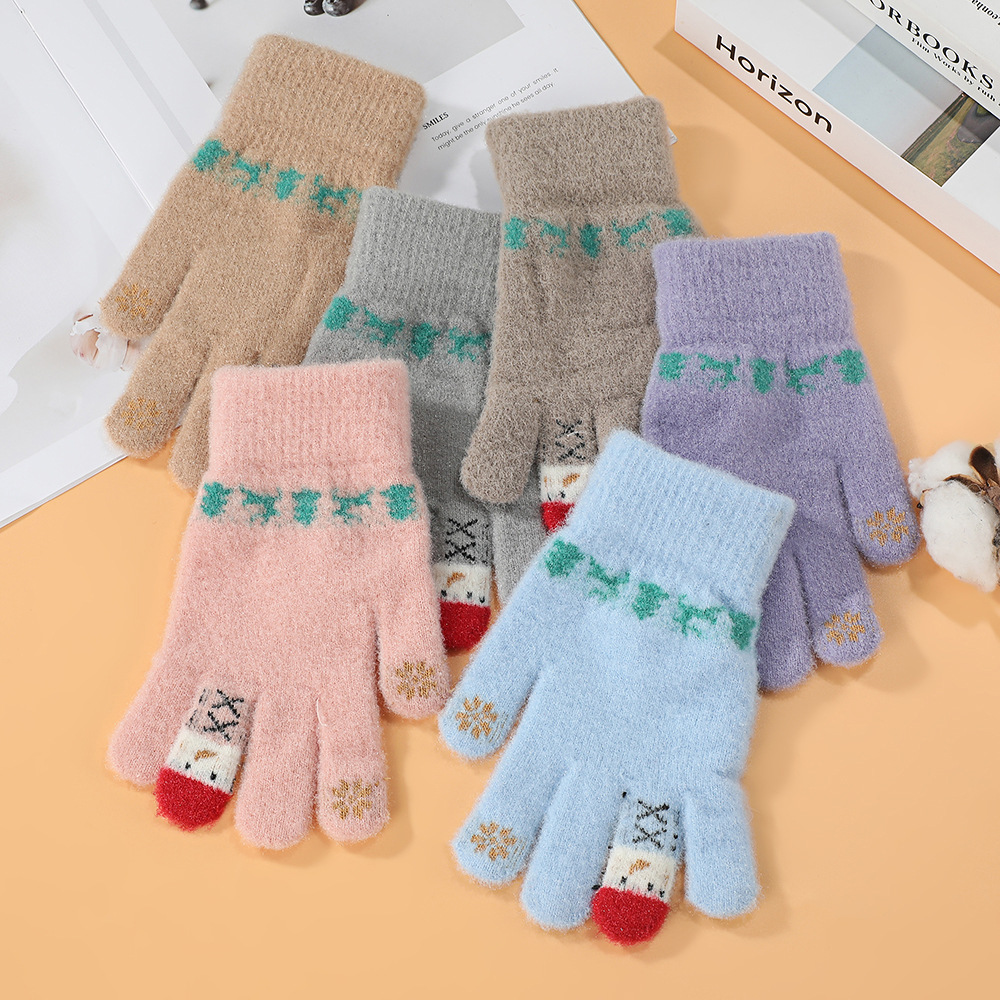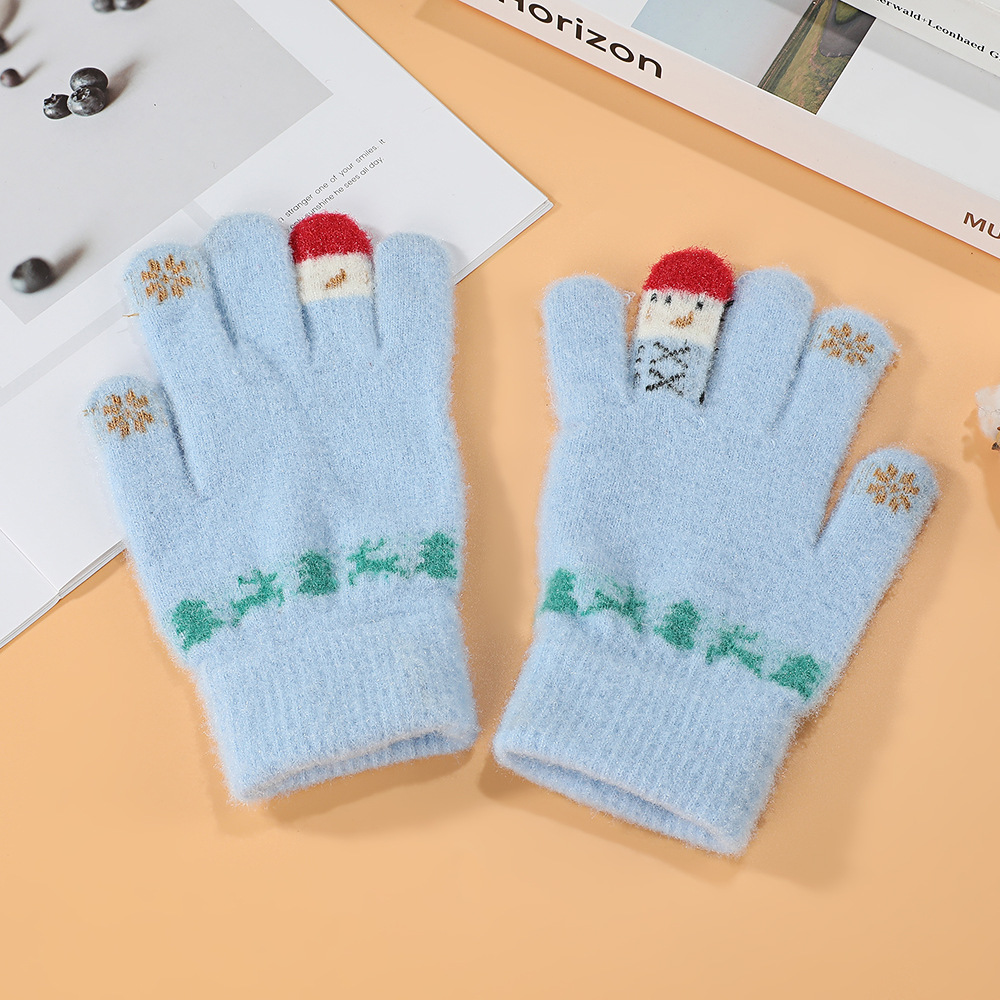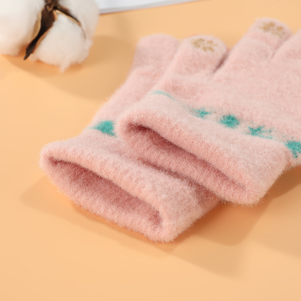 한국어 버전 손가락 곰 터치 스크린 빨간색 손가락 장갑 여학생을위한 크리 에이 티브 귀여운 두꺼운 플러시 사이클링 따뜻한 장갑