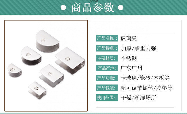 스테인레스 스틸 유리 클립 홀더 유리 클립 라미네이트 클립 욕실 유리 홀더 고무 플러그 나사 공장 국경 간 도매스토어 가기
