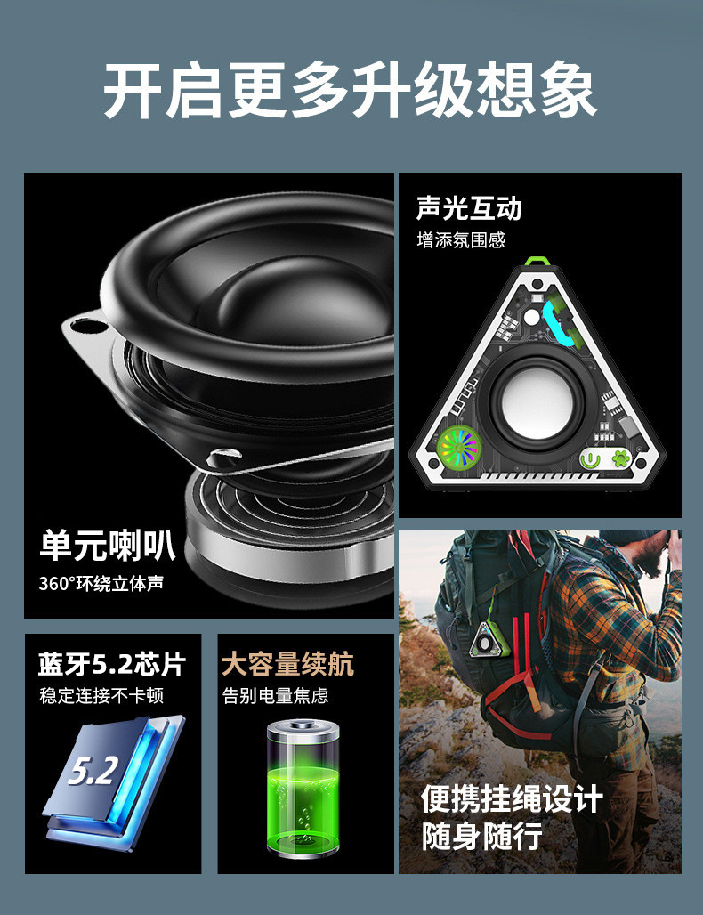 국경 간 V2 블루투스 스피커 쿨 메카 야외 무선 블루투스 스피커 휴대용 서브 우퍼 HiFi 서라운드 사운드 효과