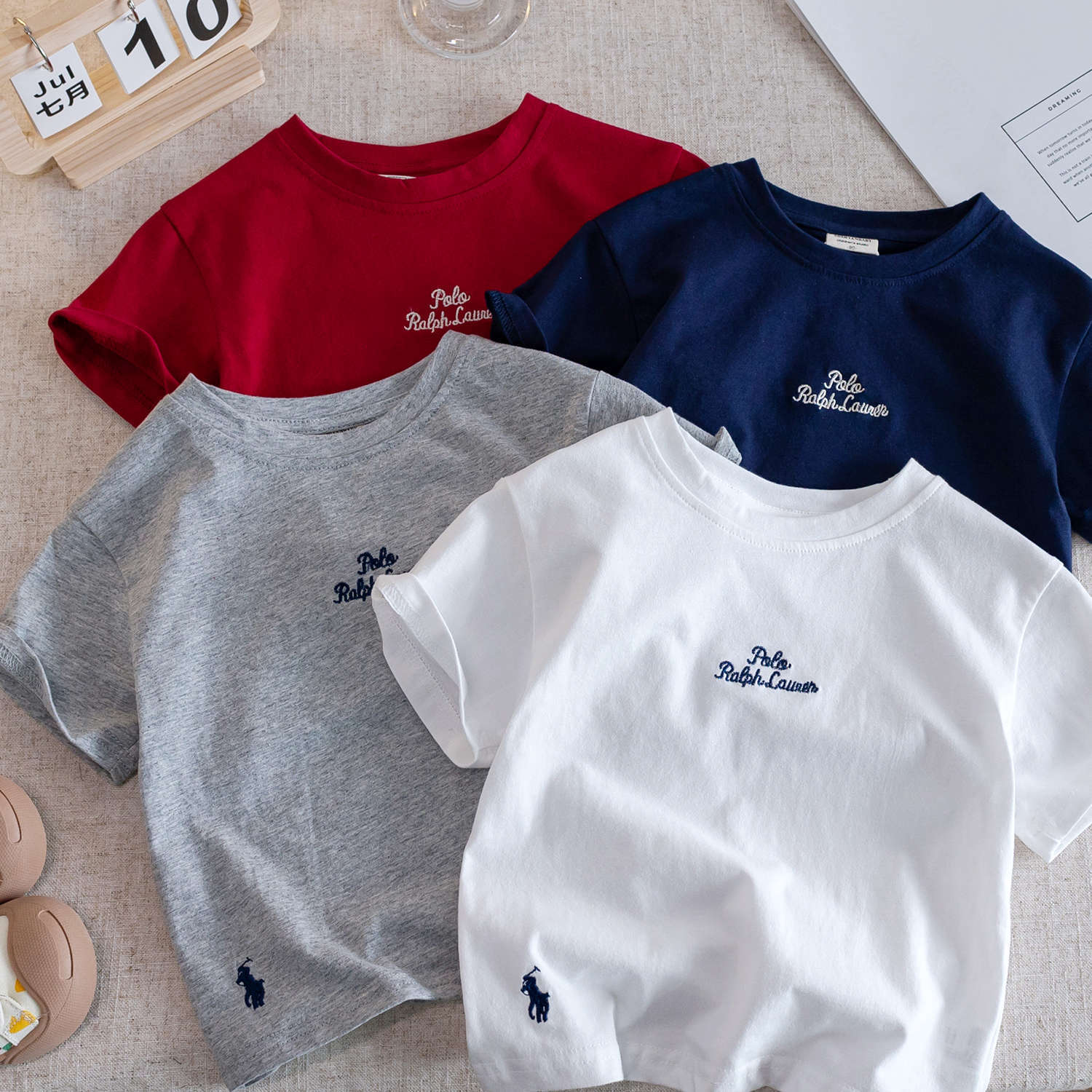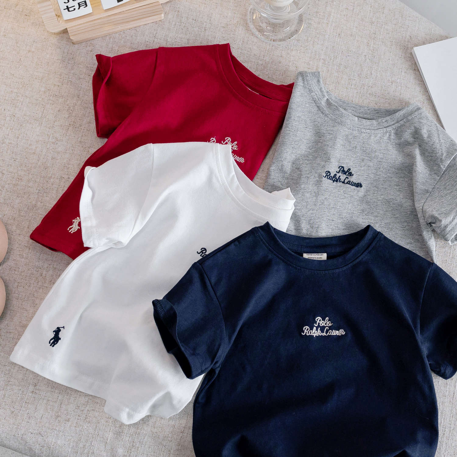 어린이 알파벳 티셔츠 반팔 남성 2025 여름 신작 아동복 단색 반팔 T 트렌디 베이비 탑 여성용 얇은 스타일