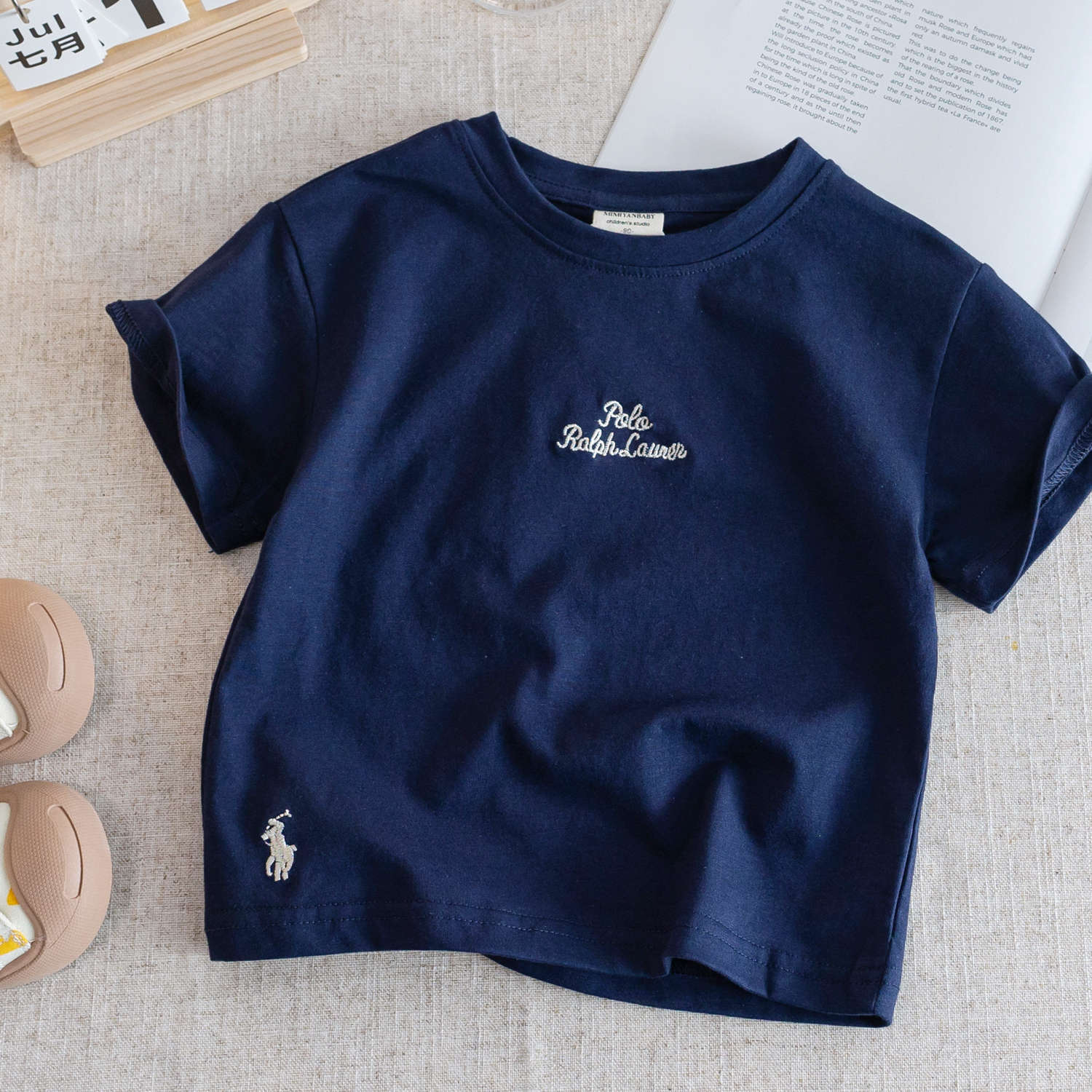어린이 알파벳 티셔츠 반팔 남성 2025 여름 신작 아동복 단색 반팔 T 트렌디 베이비 탑 여성용 얇은 스타일스토어 가기