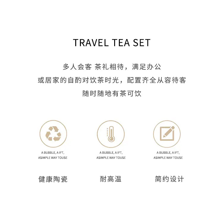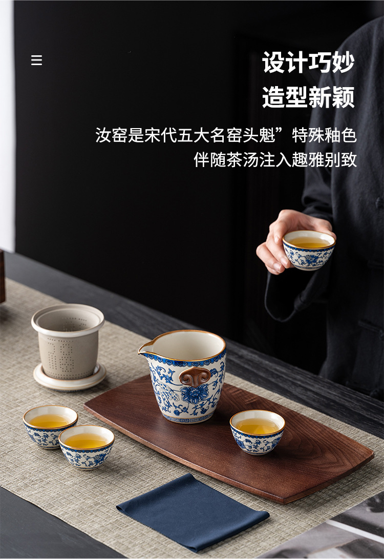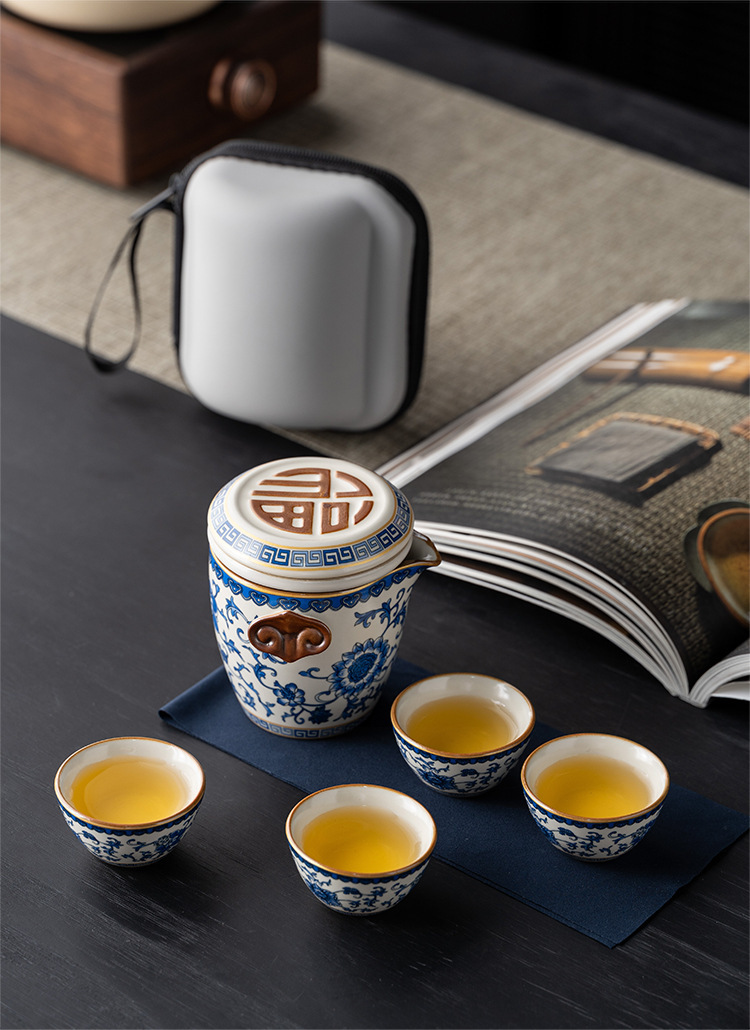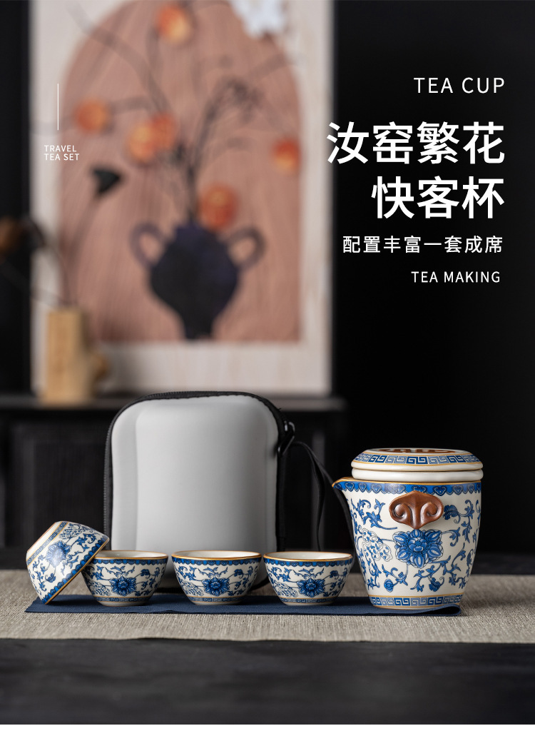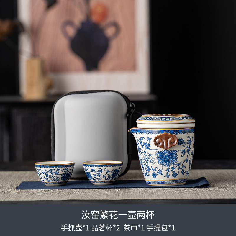 旅行茶具套装青花汝窑户外露营简约款泡茶便携式陶瓷快客一壶三杯