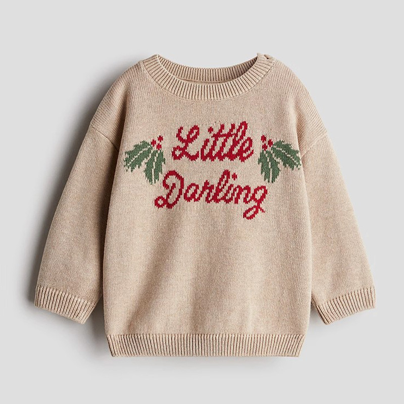남녀공용 크리스마스 스웨터, 레터링 자카드 풀오버 니트, 가을겨울 라운드넥 베이스레이어, 울 니트탑, 패밀리룩