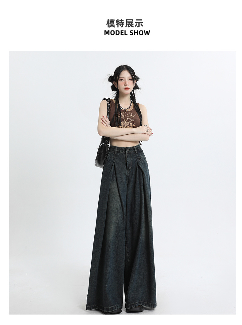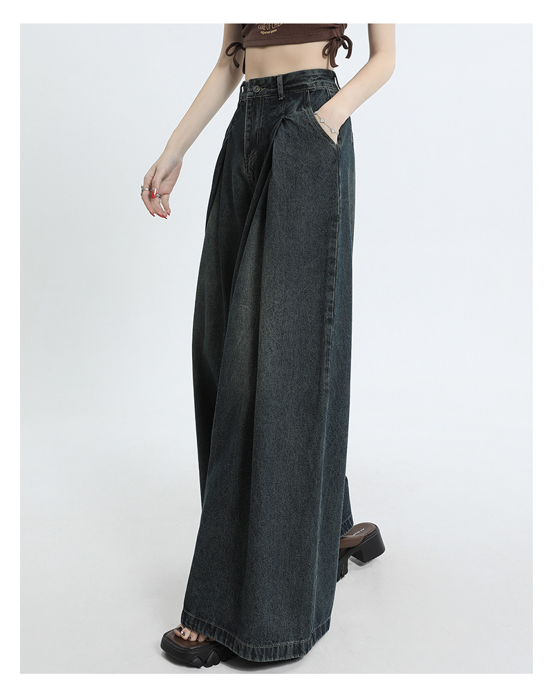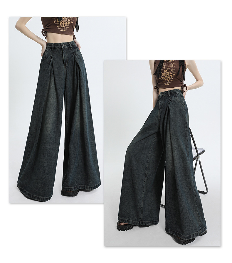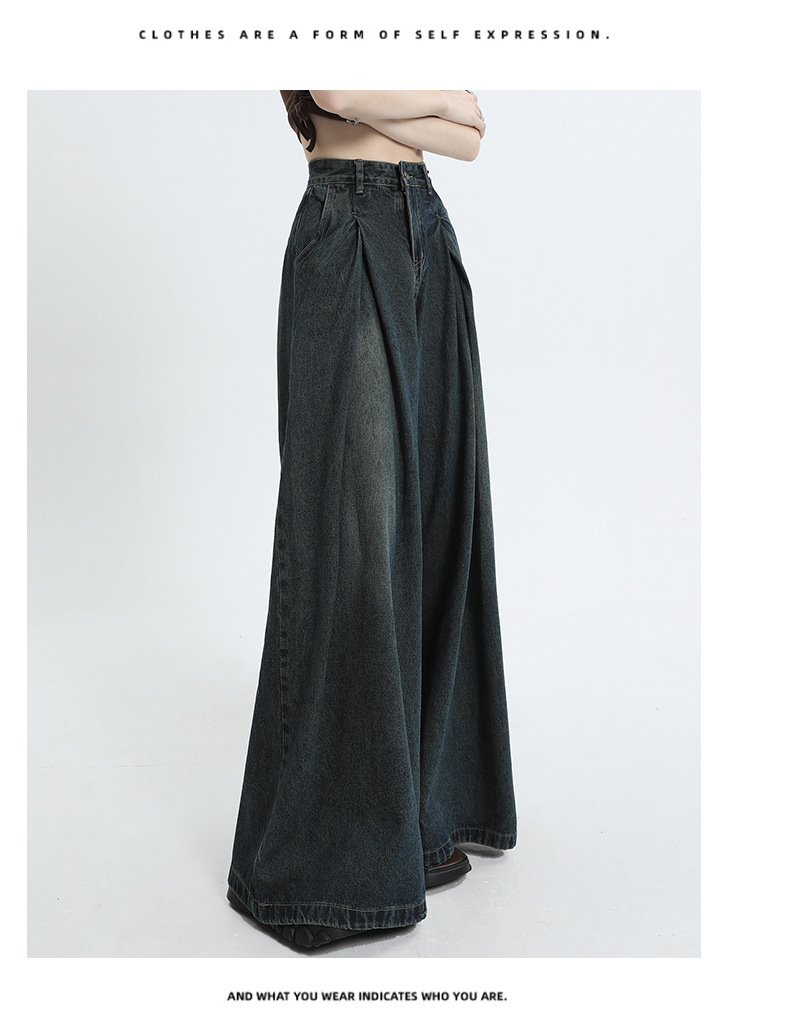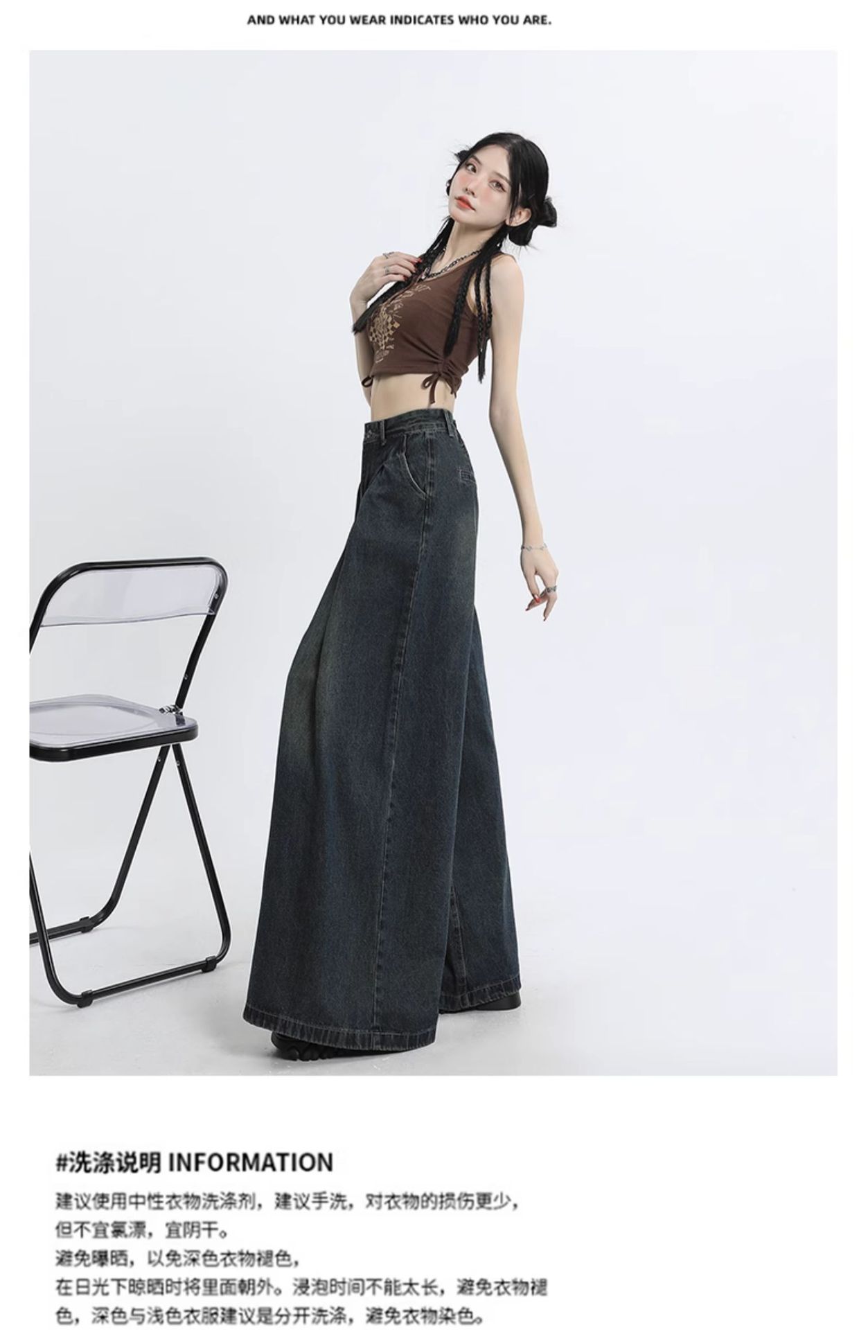 여성용 하이 웨이스트 와이드 레그 캐주얼 청바지 스커트 봄, 가을 루즈 2025 새로운 디자인 스트레이트 플레어 바지 롱 팬츠스토어 가기