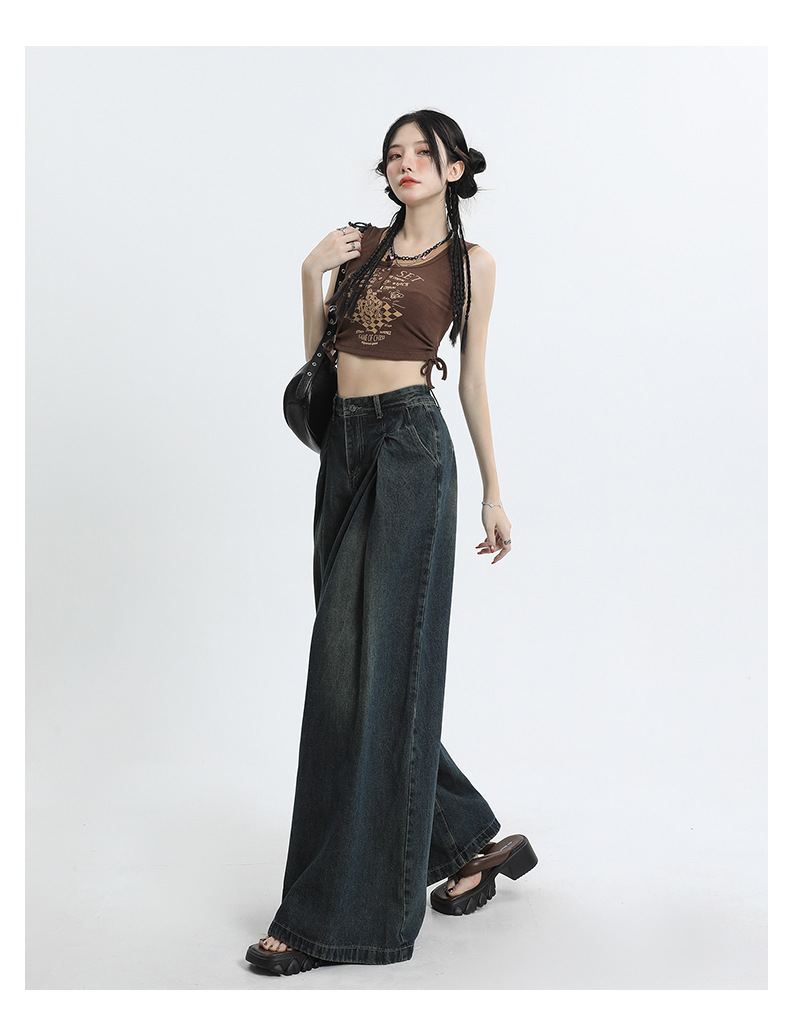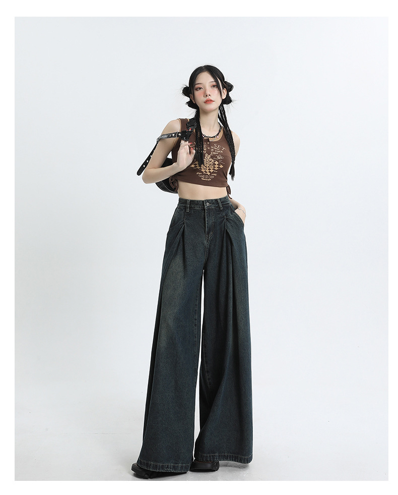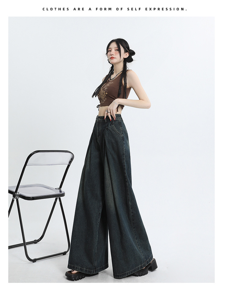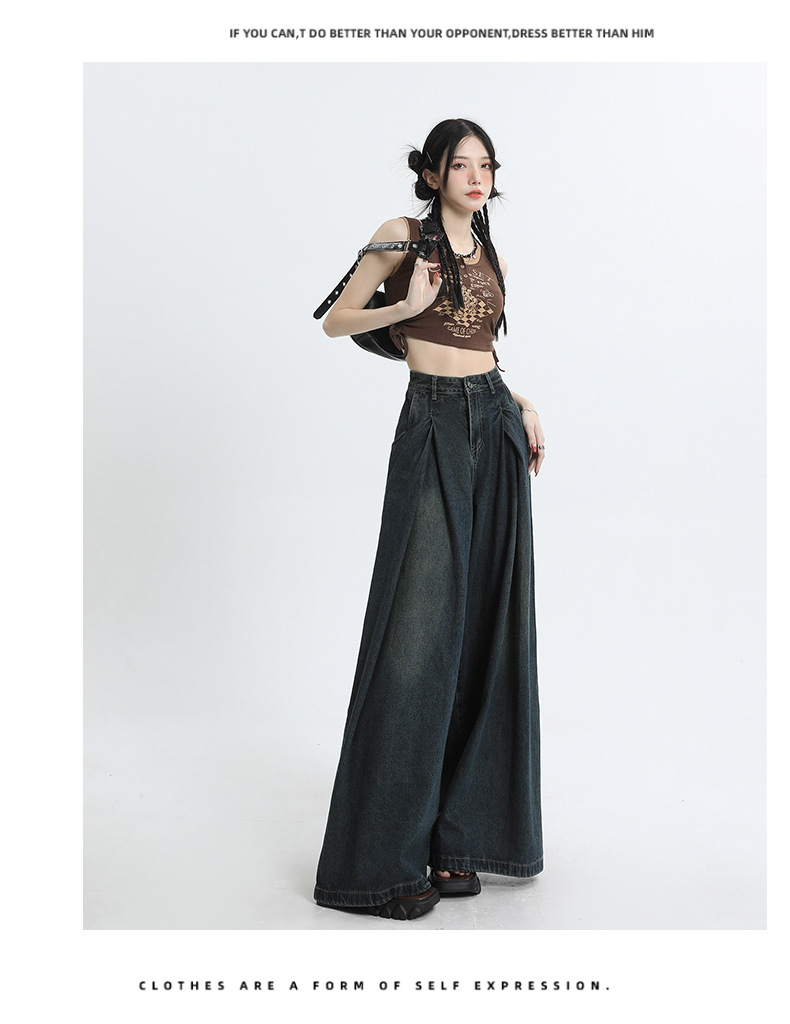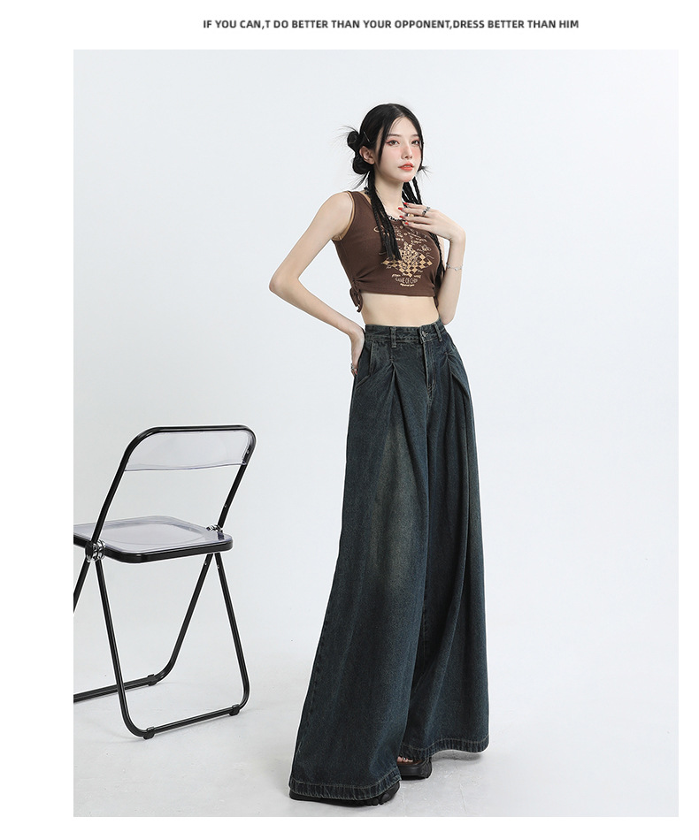 여성용 하이 웨이스트 와이드 레그 캐주얼 청바지 스커트 봄, 가을 루즈 2025 새로운 디자인 스트레이트 플레어 바지 롱 팬츠스토어 가기