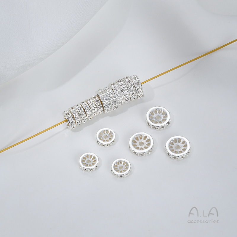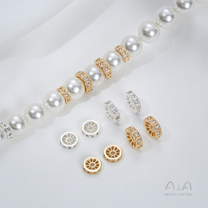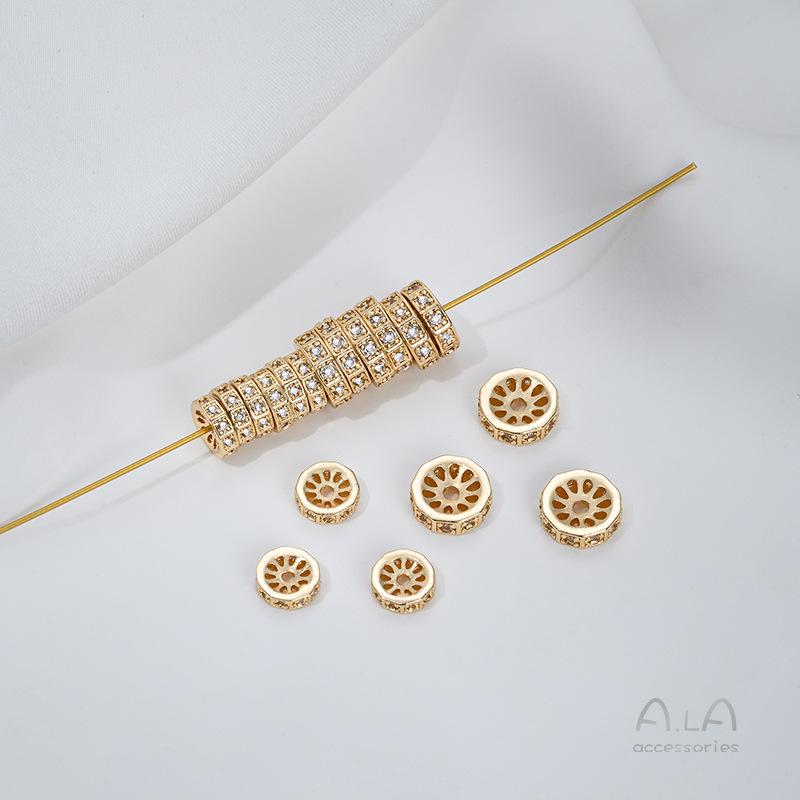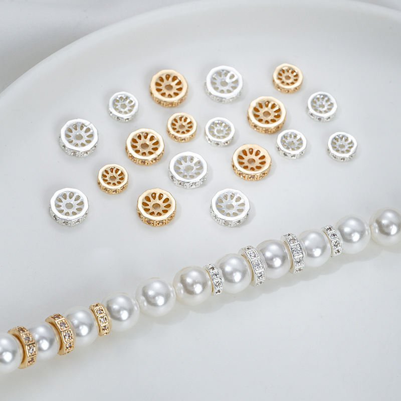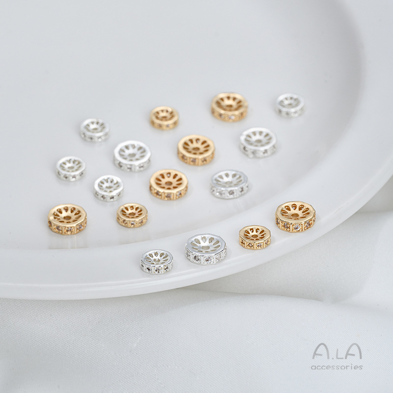 14K 금도금 밝은 실버 상감 지르콘 꽃 모양의 라운드 스페이서 휠 스페이서 비즈 diy 수제 페르시 핸드 메이드 쥬얼리 액세서리스토어 가기