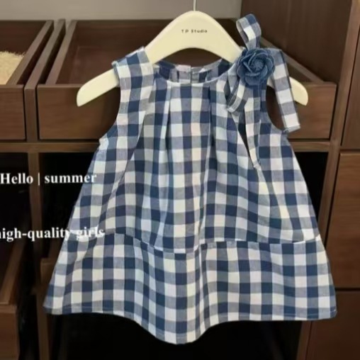 여아 복고풍 달콤한 동백 드레스, 유아용 체크 무늬 스커트, 중소형 아동용 패셔너블하고 다재다능한 흰색 민소매 조끼 스커트스토어 가기