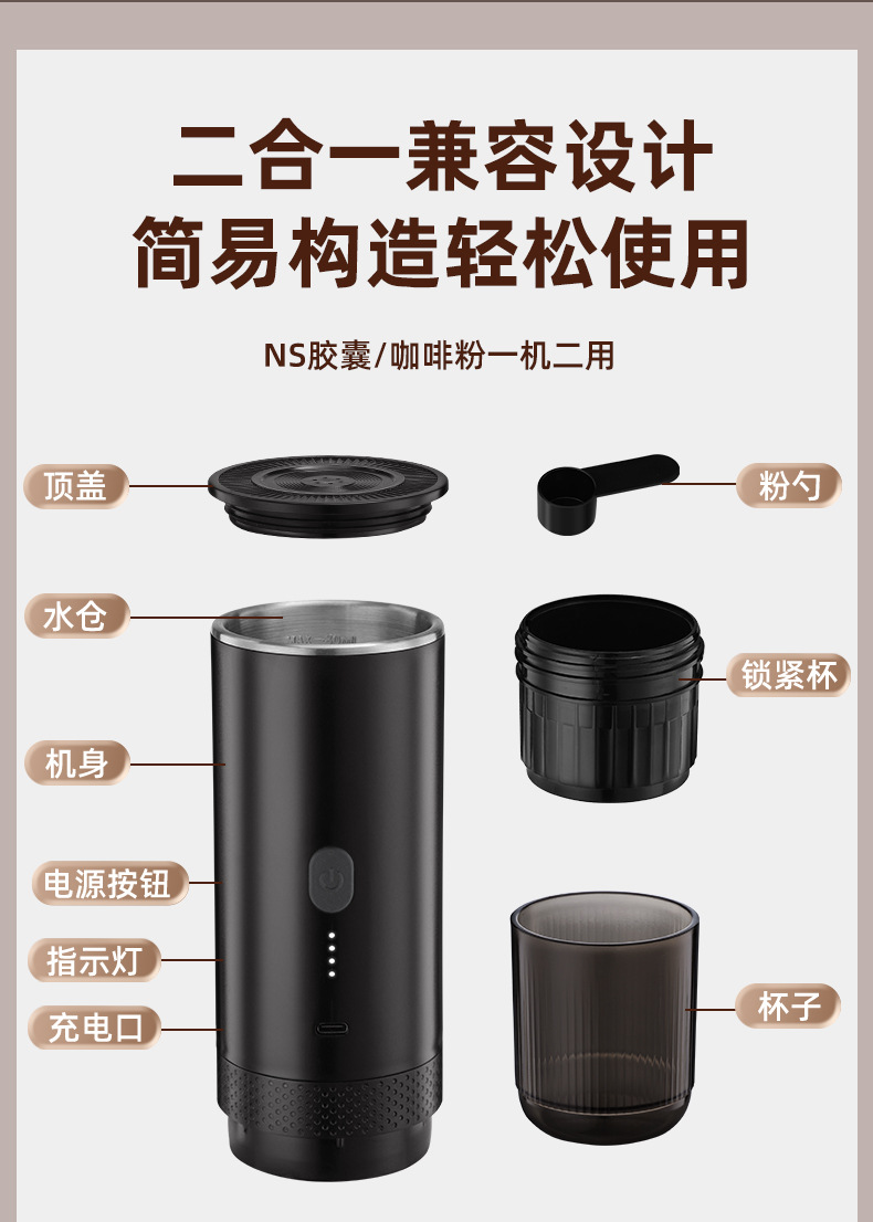 국경 간 휴대용 커피 머신 캡슐 커피 머신 무선 난방 이탈리아 커피 머신 충전 펌프 프레스 커피 머신스토어 가기