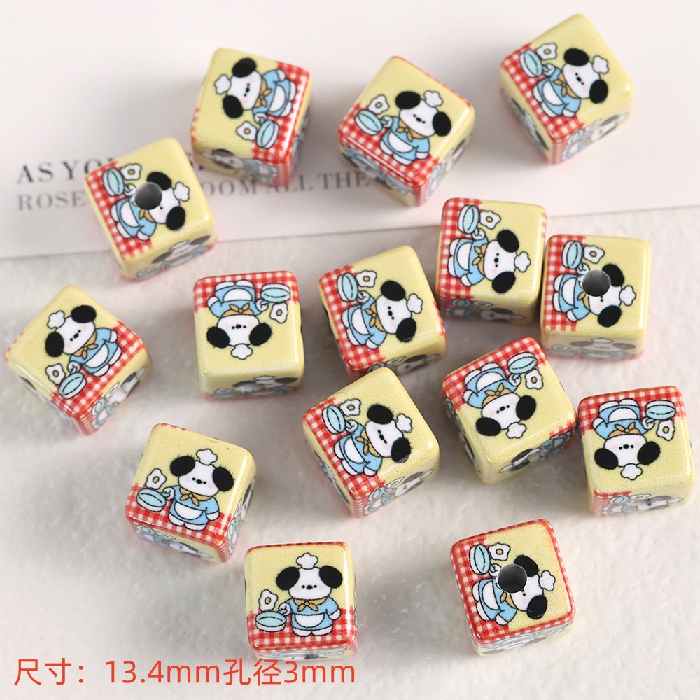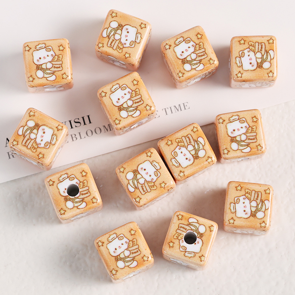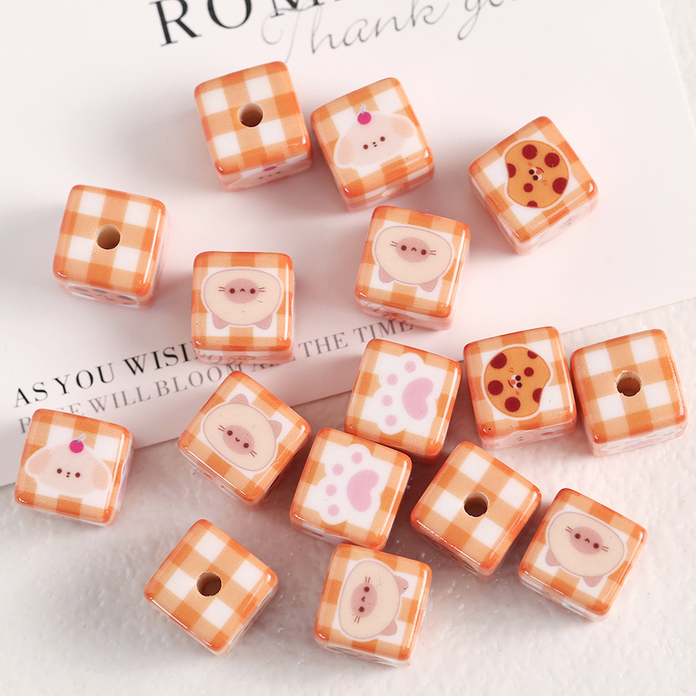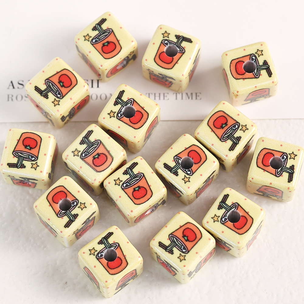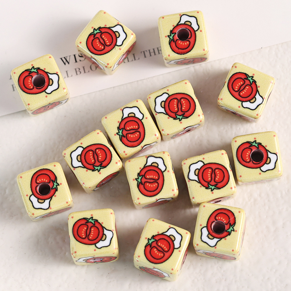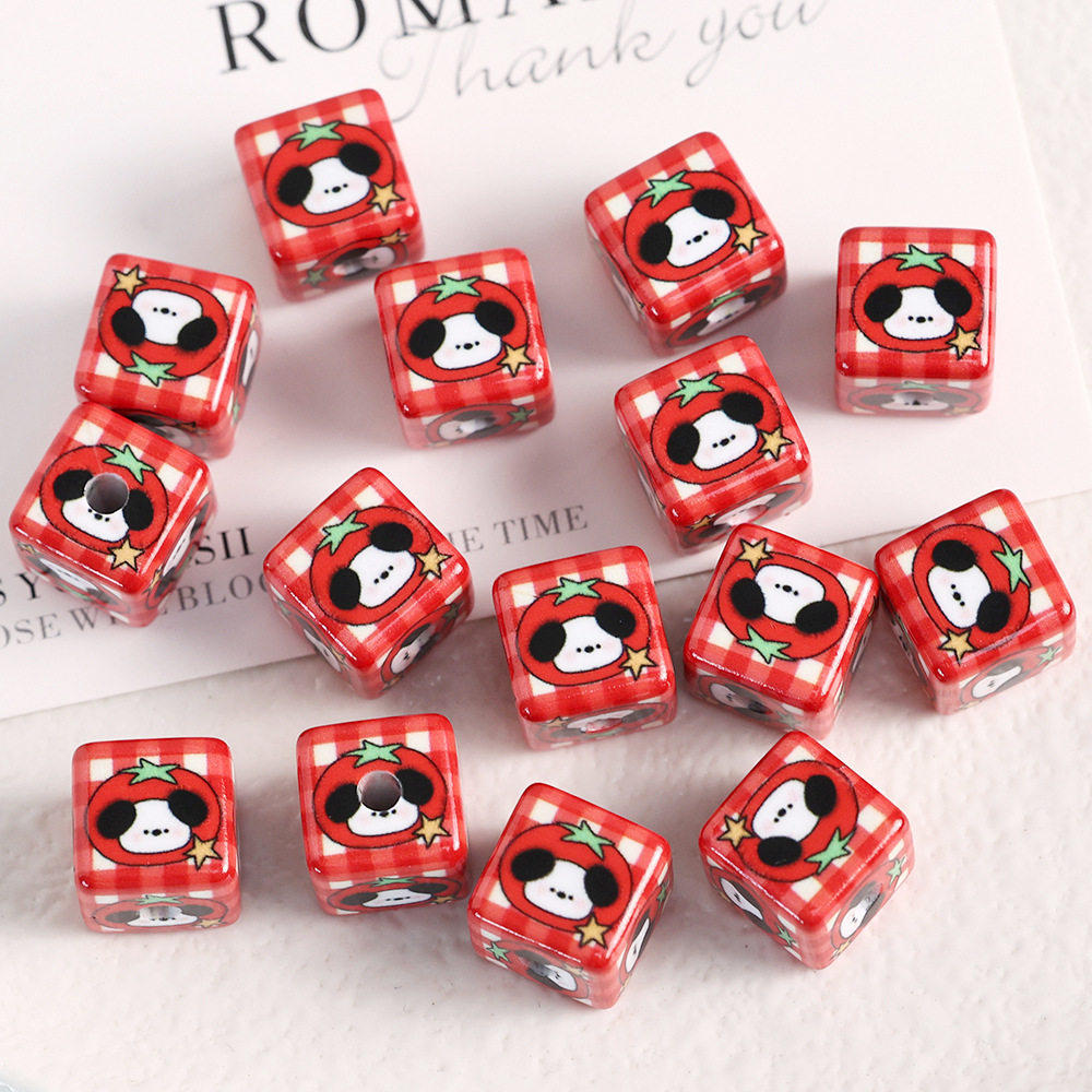 14mm 인쇄 토마토 버거 강아지 사각형 구슬 수제 diy 루즈 비즈 팔찌 휴대 전화 체인 머리 로프 가방 교수형