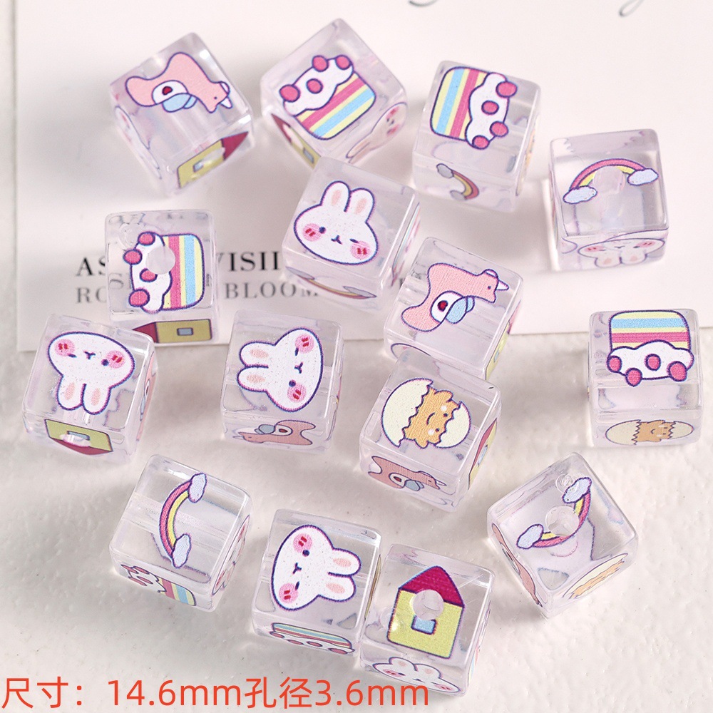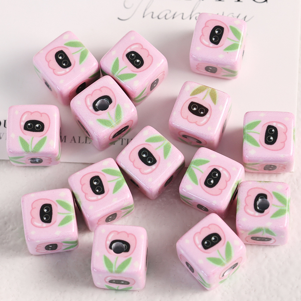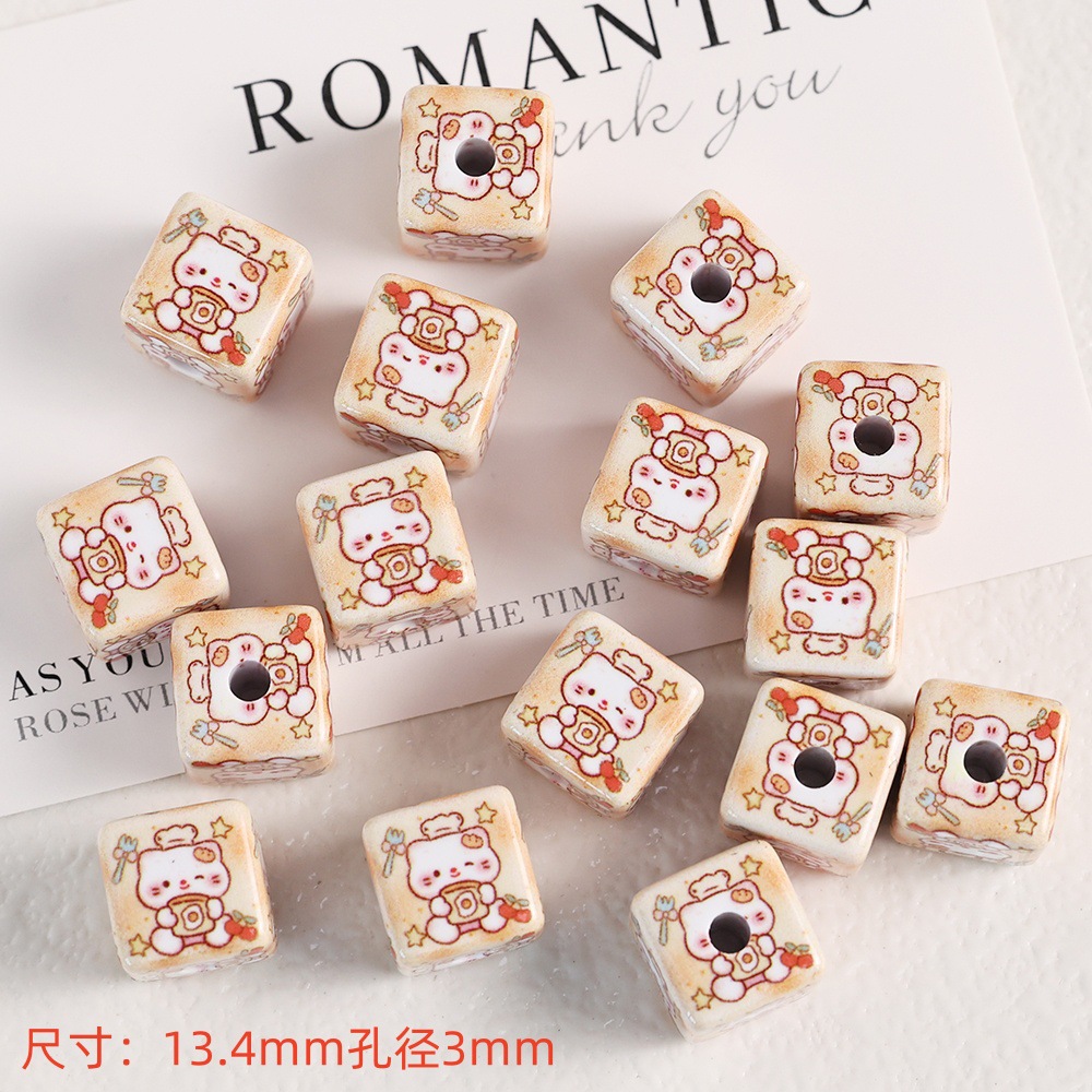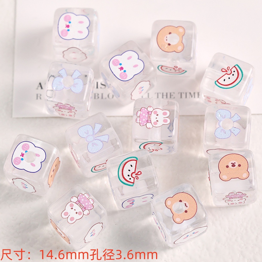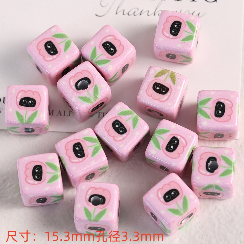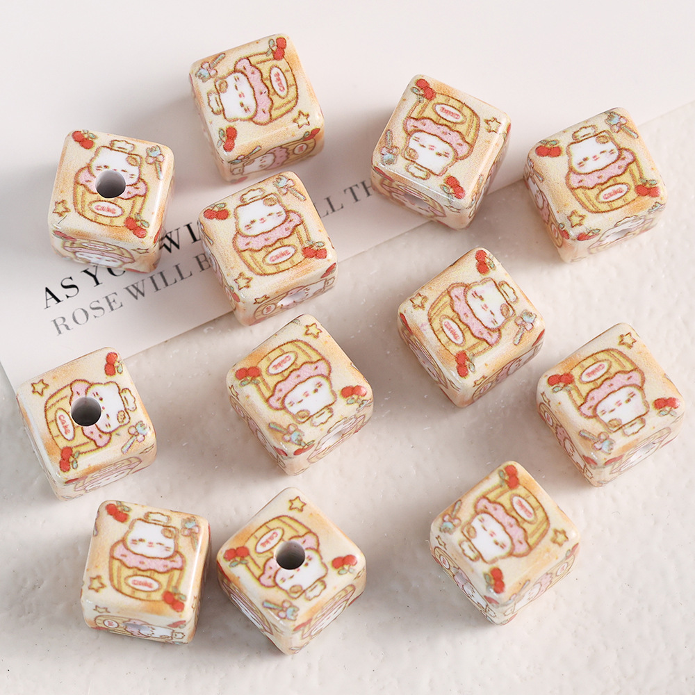 14mm 인쇄 토마토 버거 강아지 사각형 구슬 수제 diy 루즈 비즈 팔찌 휴대 전화 체인 머리 로프 가방 교수형