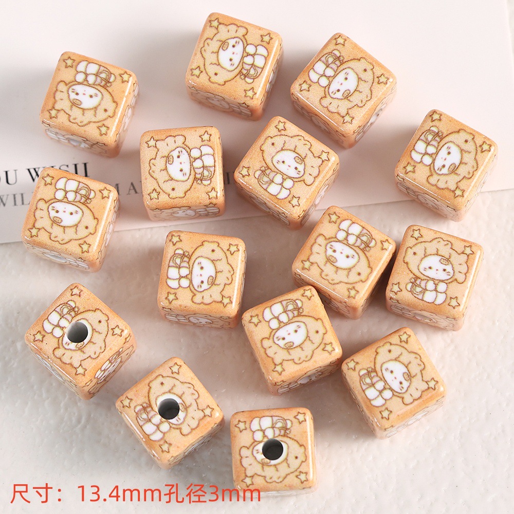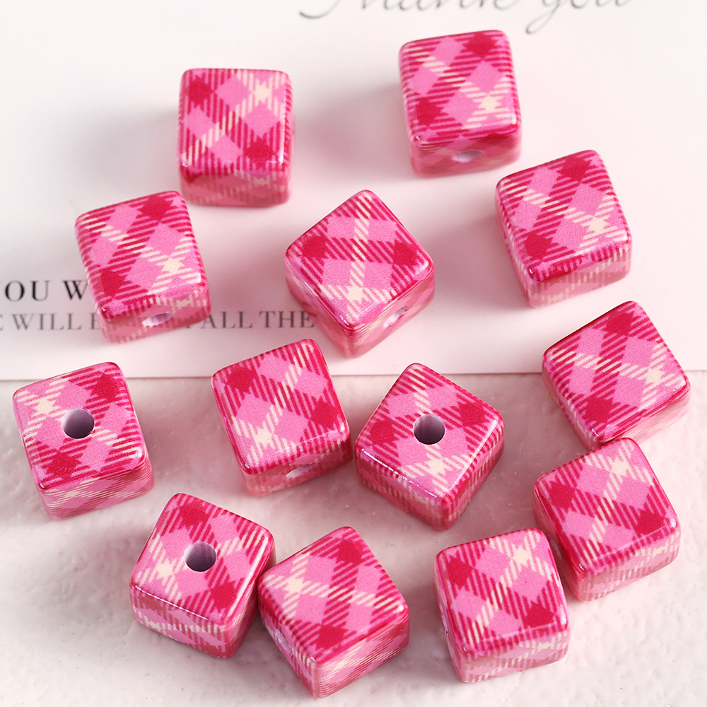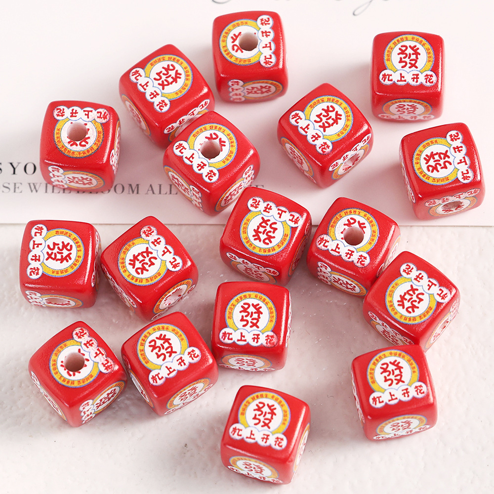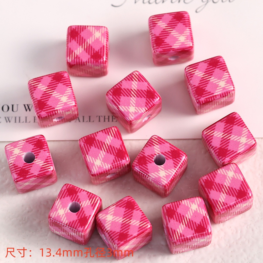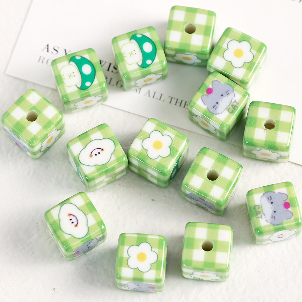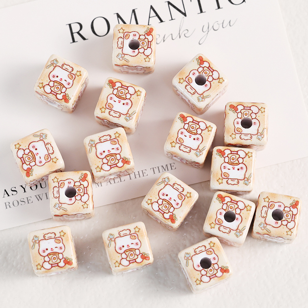 14mm 인쇄 토마토 버거 강아지 사각형 구슬 수제 diy 루즈 비즈 팔찌 휴대 전화 체인 머리 로프 가방 교수형