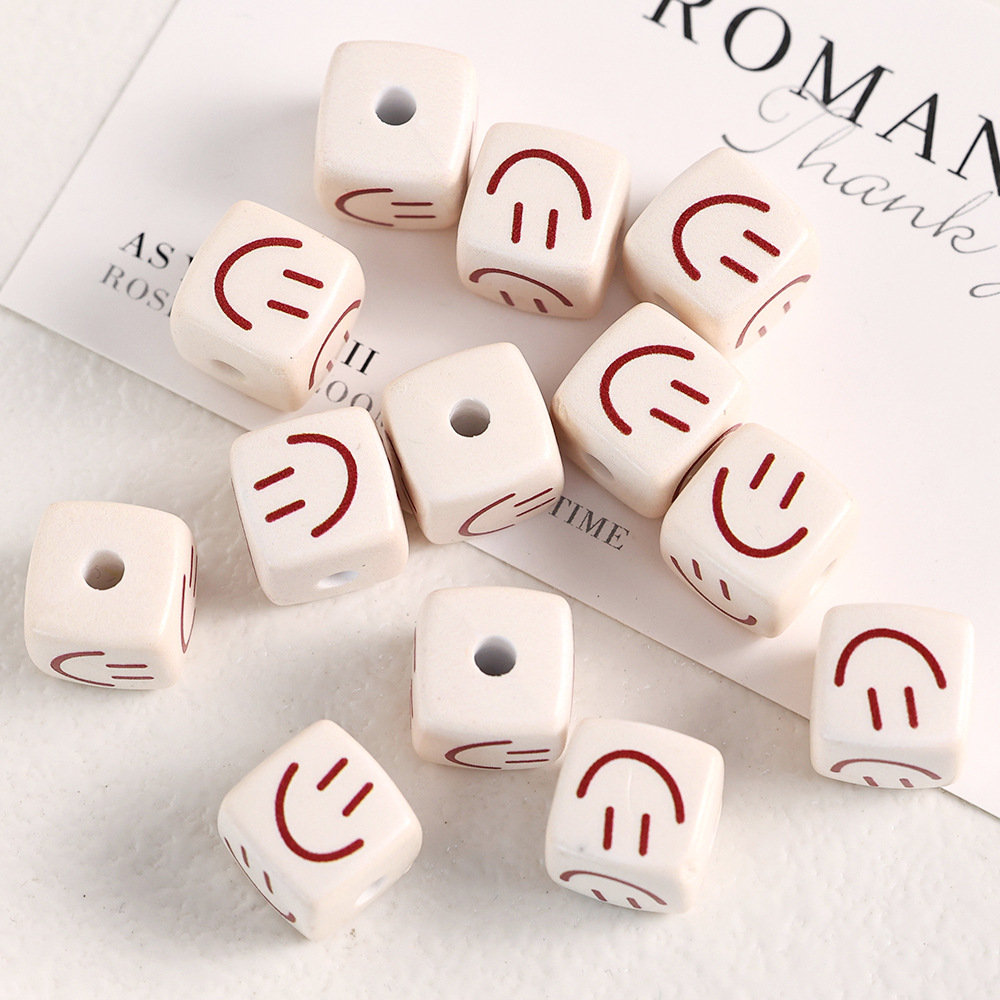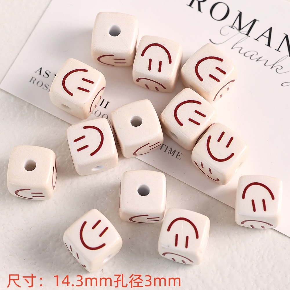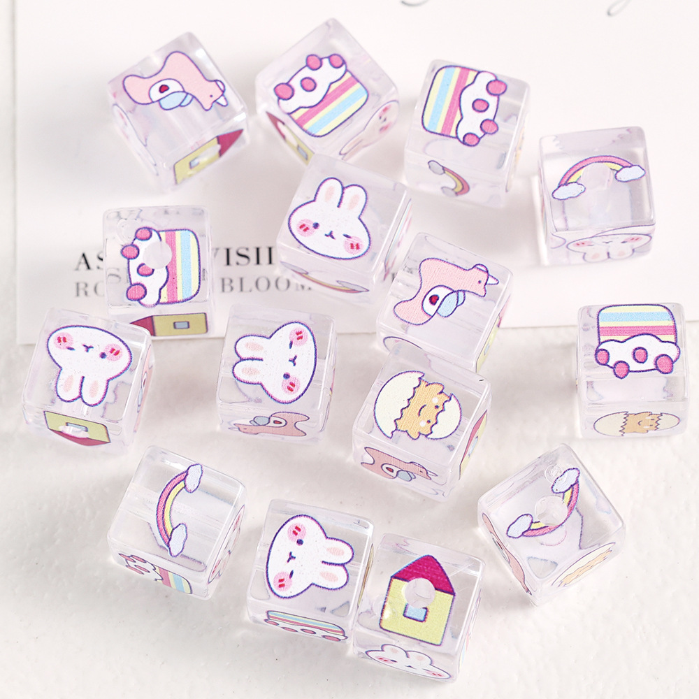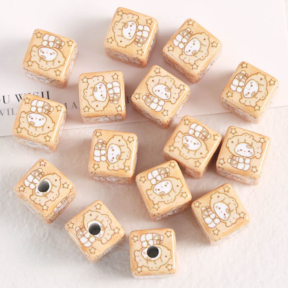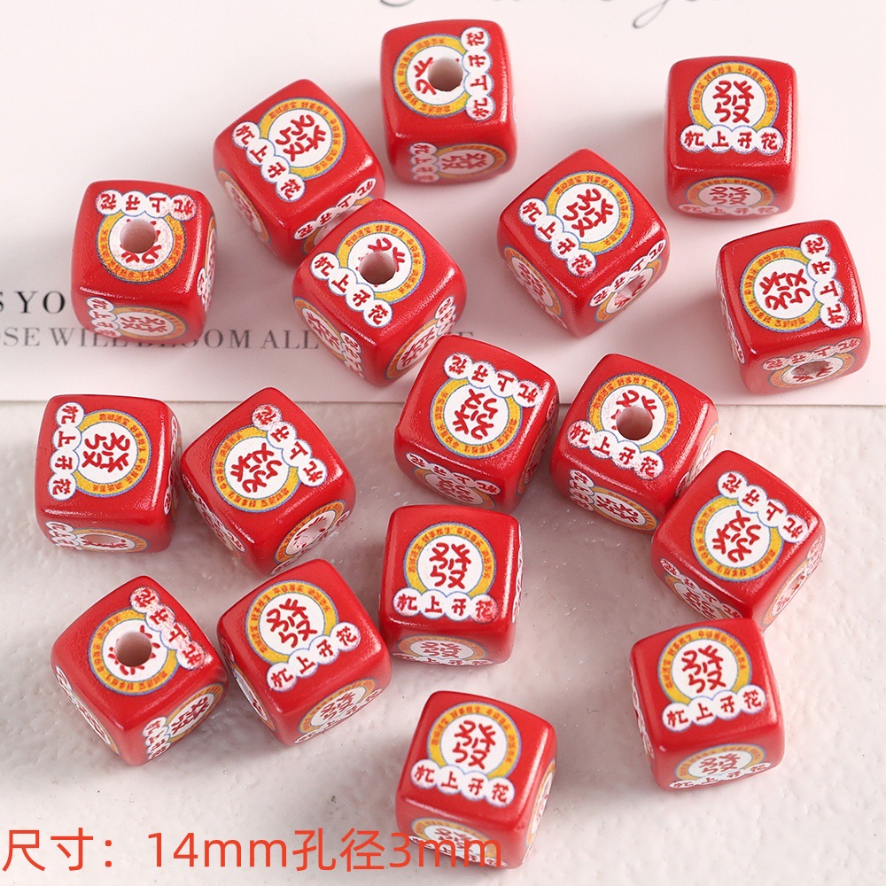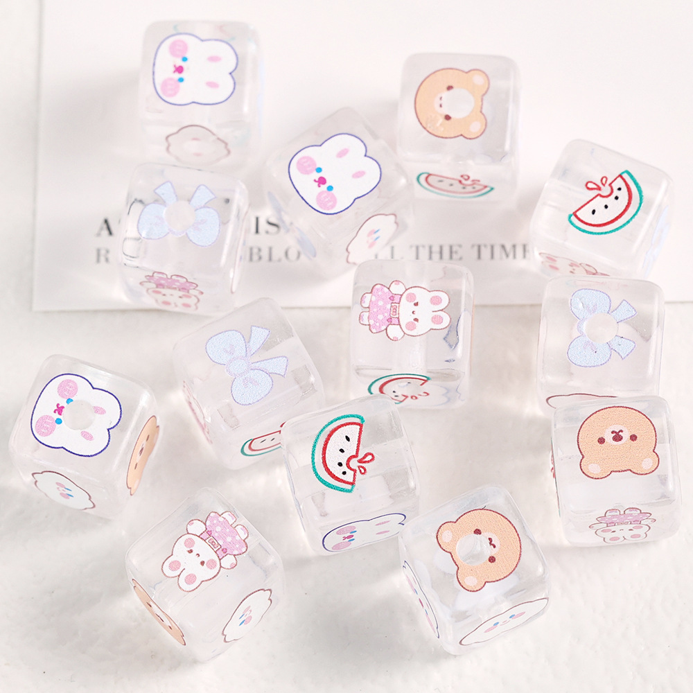 14mm 인쇄 토마토 버거 강아지 사각형 구슬 수제 diy 루즈 비즈 팔찌 휴대 전화 체인 머리 로프 가방 교수형