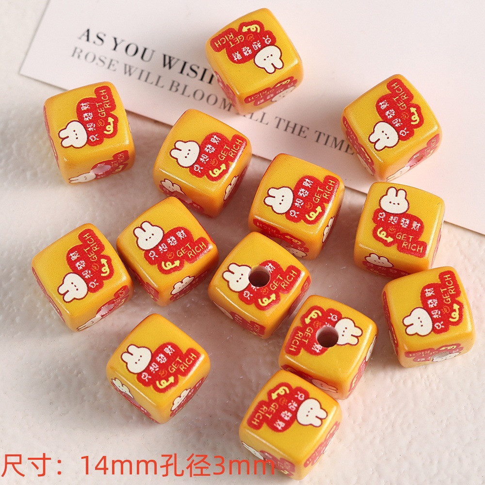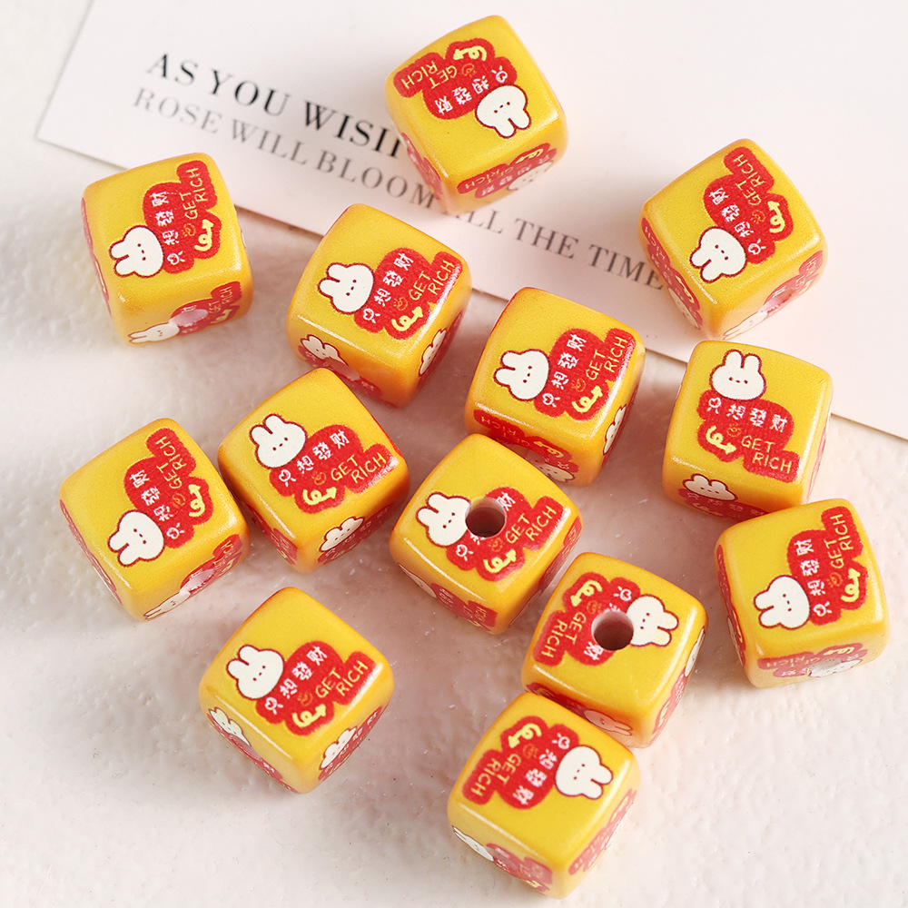 14mm 인쇄 토마토 버거 강아지 사각형 구슬 수제 diy 루즈 비즈 팔찌 휴대 전화 체인 머리 로프 가방 교수형스토어 가기