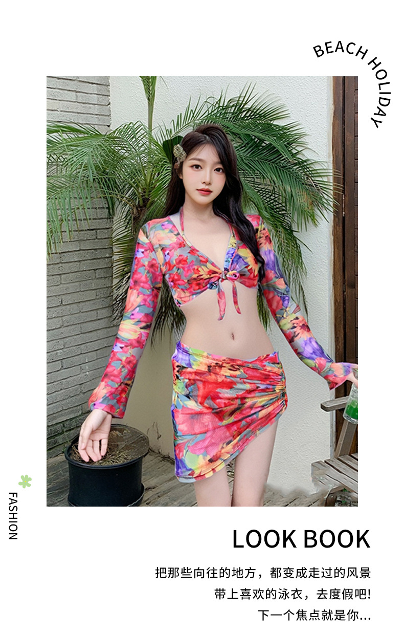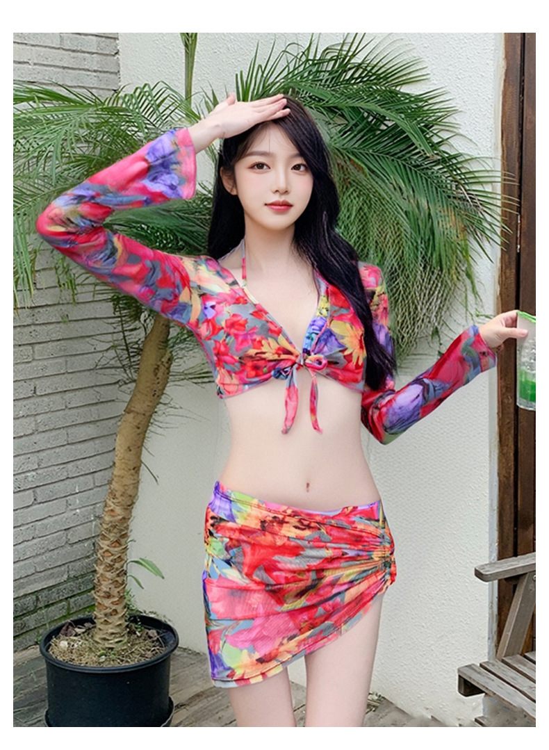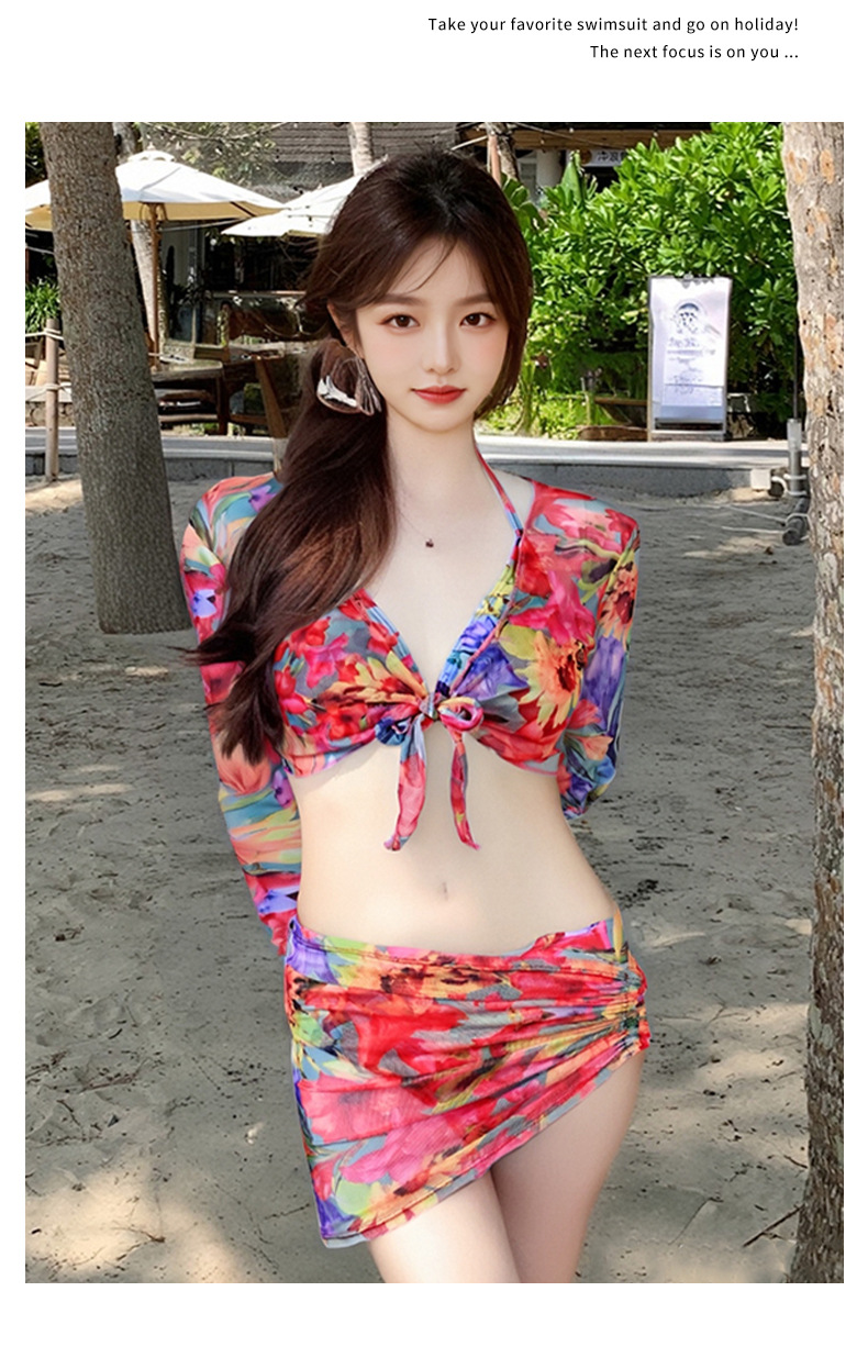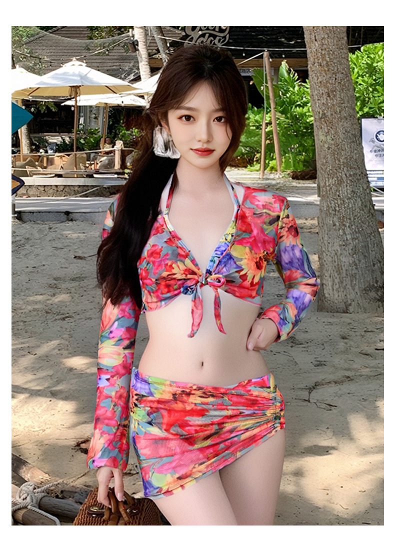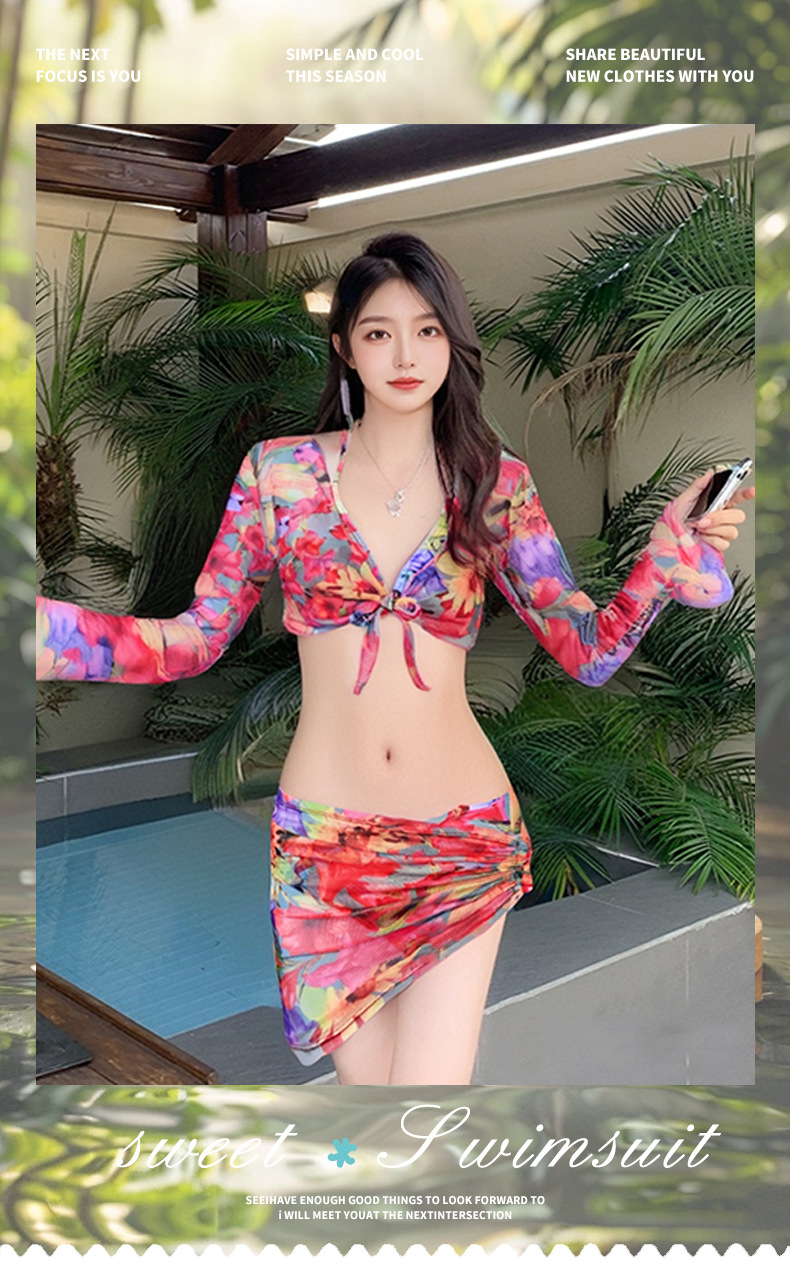 2025년 신형 여성용 비키니 수영복, 작은 가슴 푸쉬업, 긴팔, 슬리밍, 고급 해변 휴가 수영복 4종 세트스토어 가기