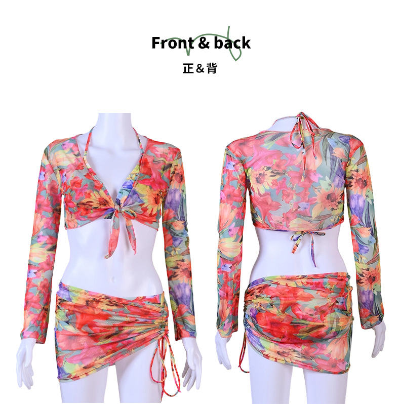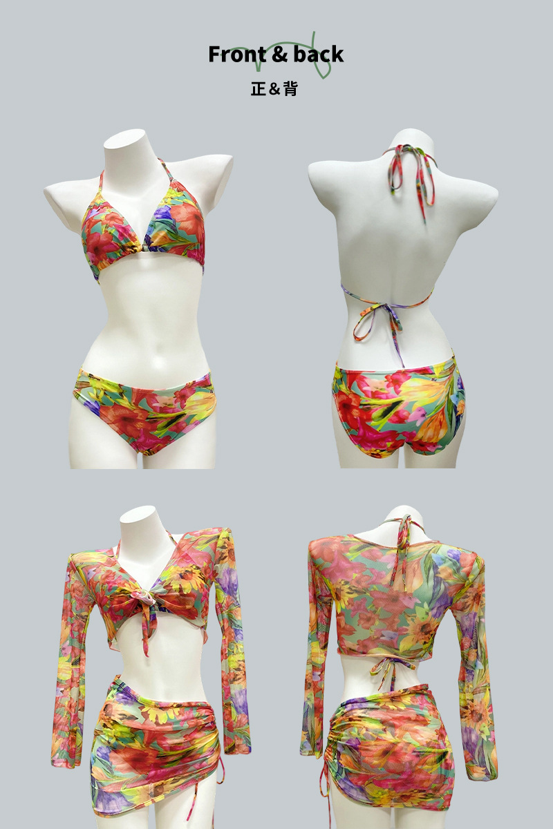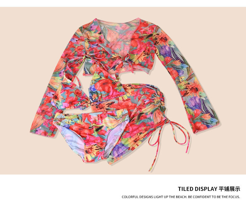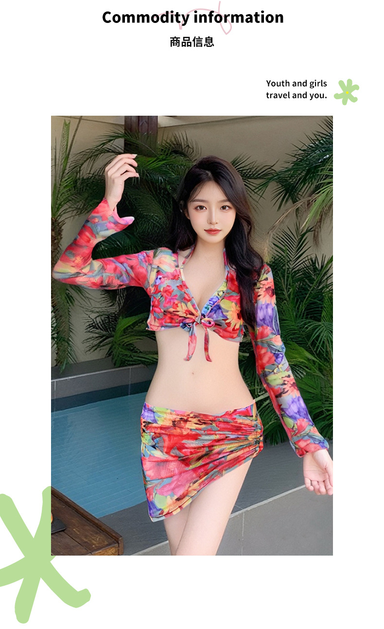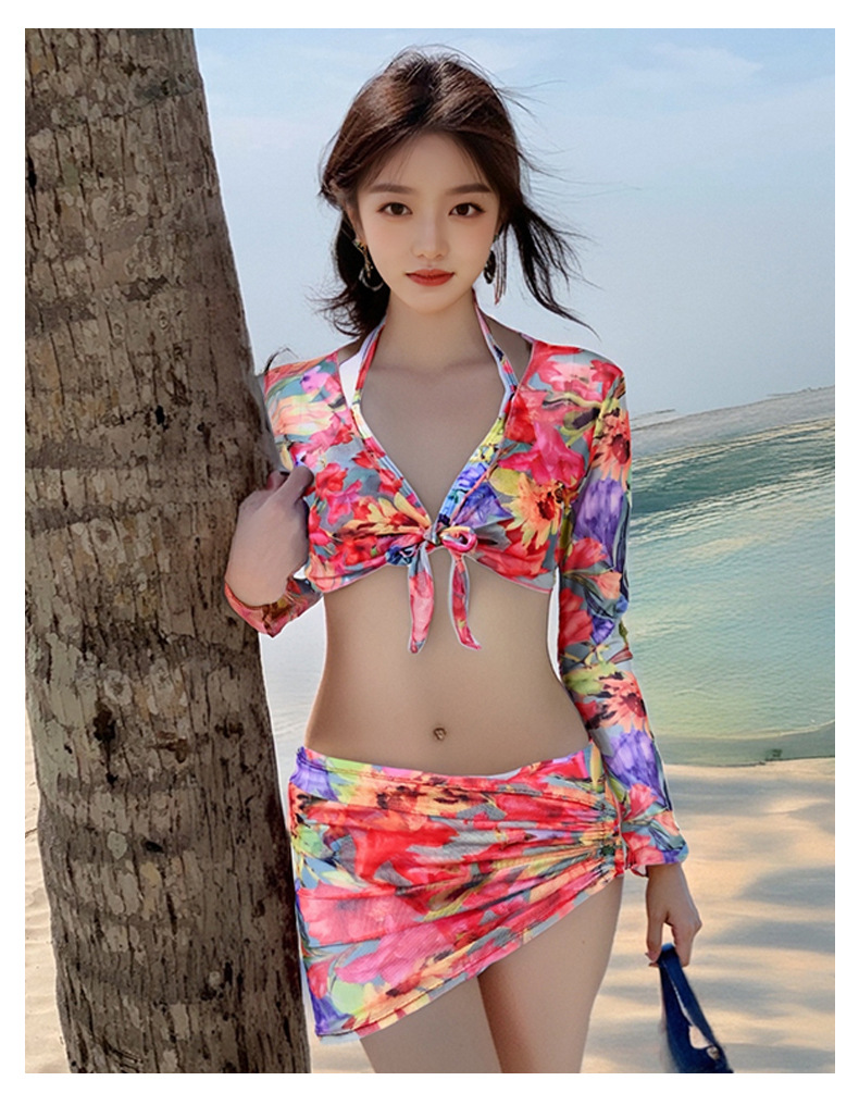 2025년 신형 여성용 비키니 수영복, 작은 가슴 푸쉬업, 긴팔, 슬리밍, 고급 해변 휴가 수영복 4종 세트스토어 가기