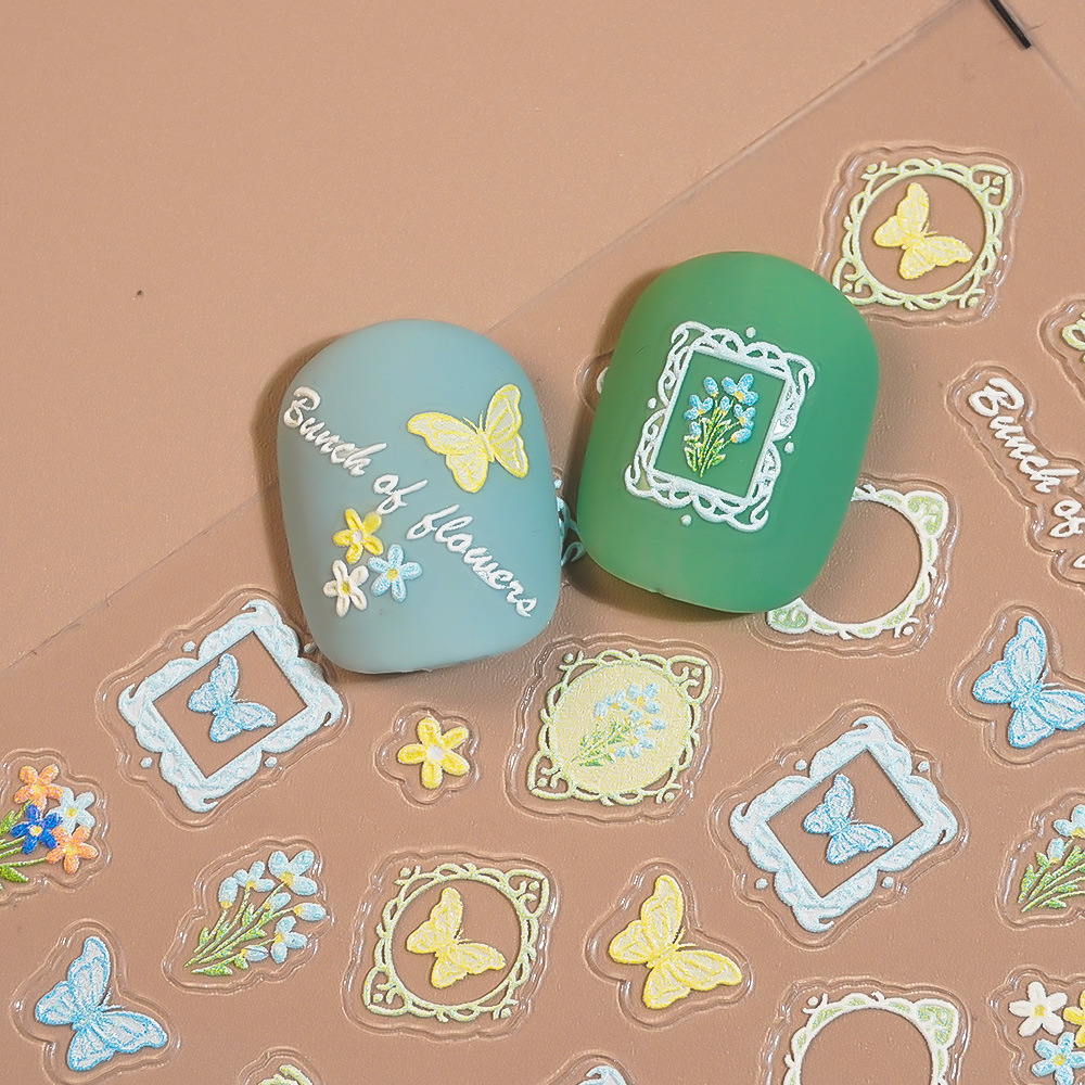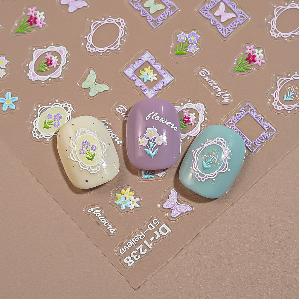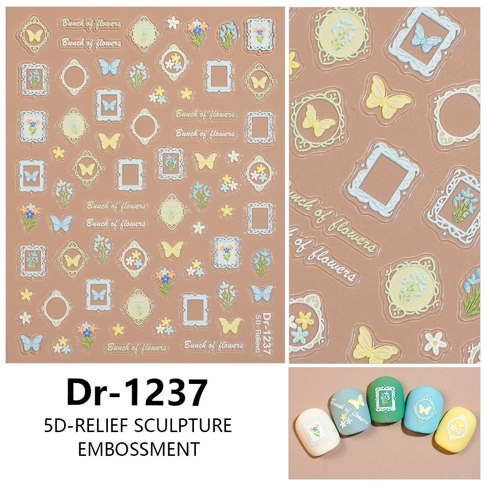 Redanco 양각 기능 작은 빨간 책 인기 네일 아트 스티커 나비 꽃 사진 프레임 입체 네일 스티커 Dr1238
