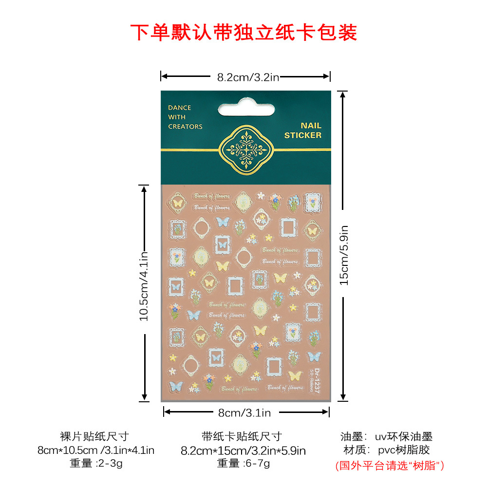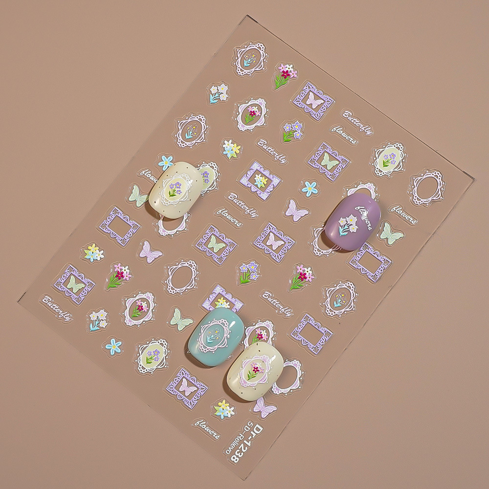 Redanco 양각 기능 작은 빨간 책 인기 네일 아트 스티커 나비 꽃 사진 프레임 입체 네일 스티커 Dr1238스토어 가기