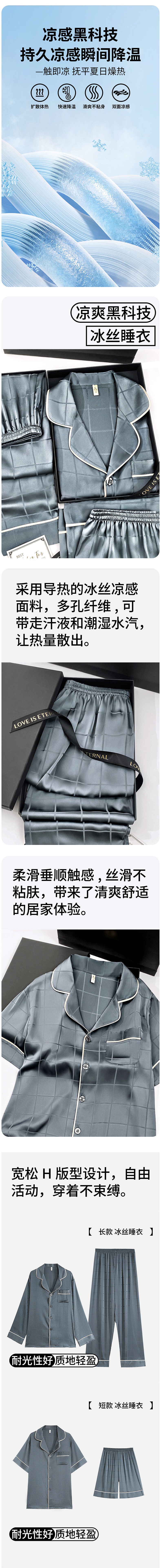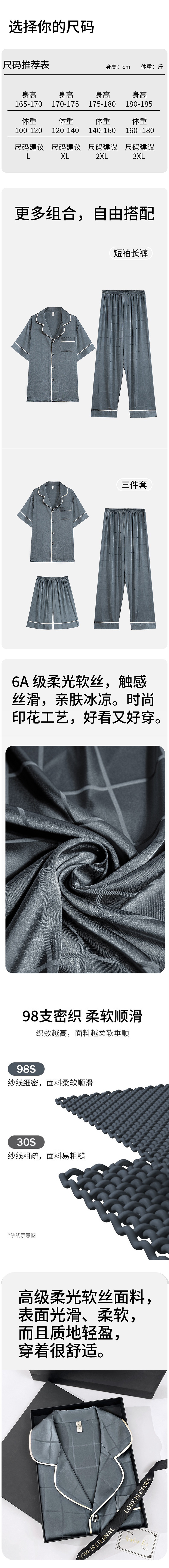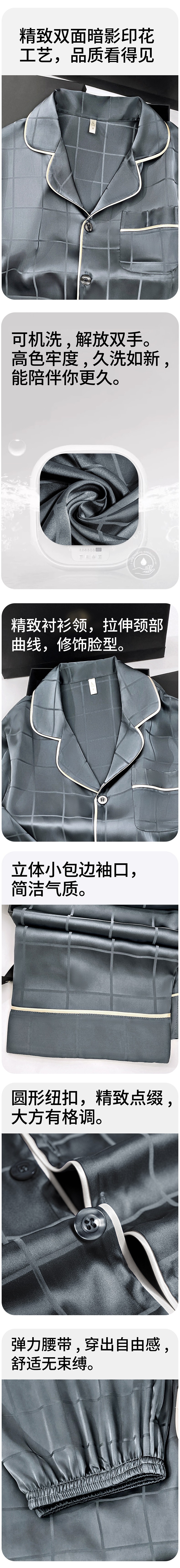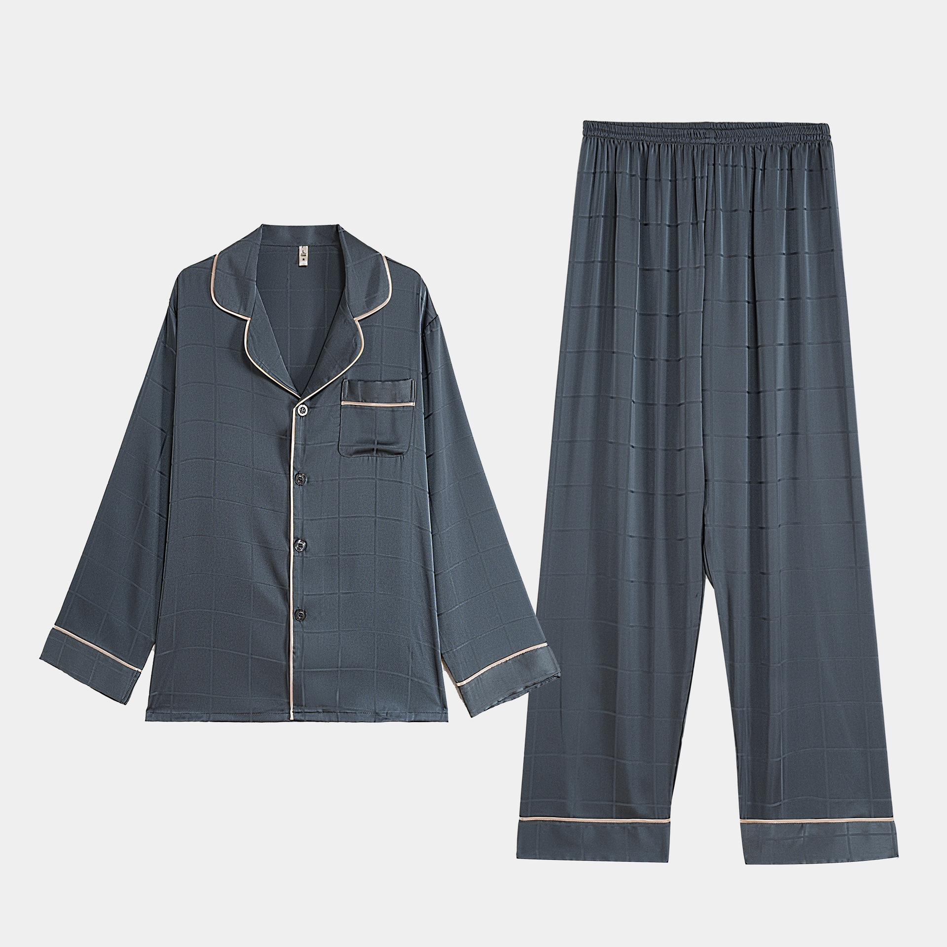 상하이 스토리 남성용 실크 잠옷 정장 긴팔 바지 얼음과 눈 실크 자카드 아버지 홈웨어 실크 대형스토어 가기