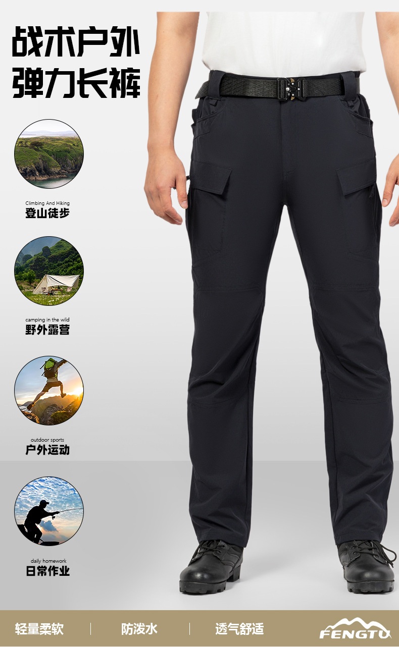 Fengtu 남성용 발수 전술 야외 4방향 스트레치 바지, 경량 통기성 멀티 포켓 작업복 바지 도매