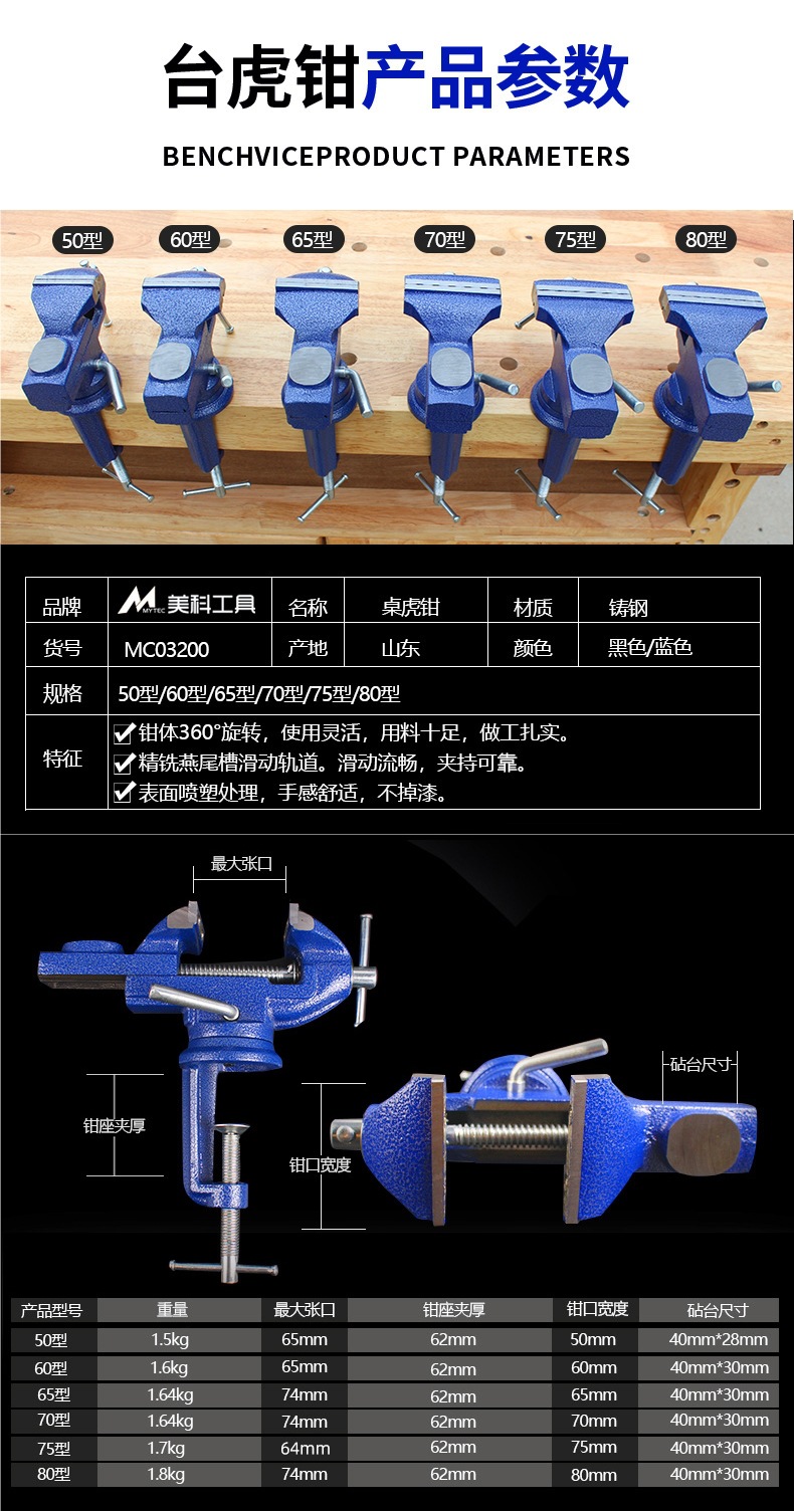 Meike 목공 작업대 50형 바이스 360도 회전 범용 소형 바이스 테이블 바이스 작업대 테이블 플랫 바이스스토어 가기