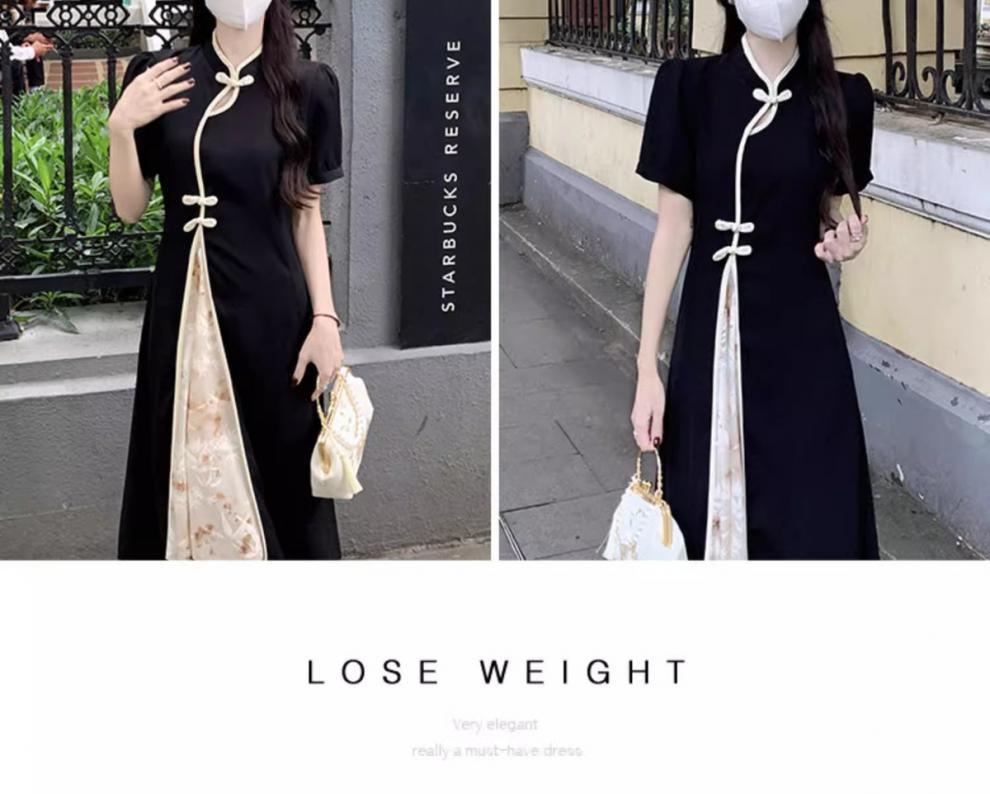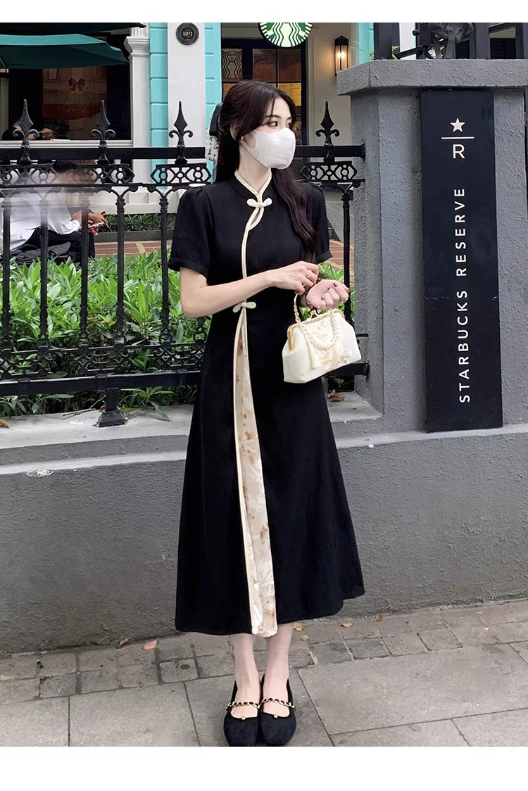 2025년 여름 새로운 대형 새로운 중국 스타일 여성 인기 하이 엔드 복고풍 스커트 중국 스타일 버튼 치파오 드레스스토어 가기