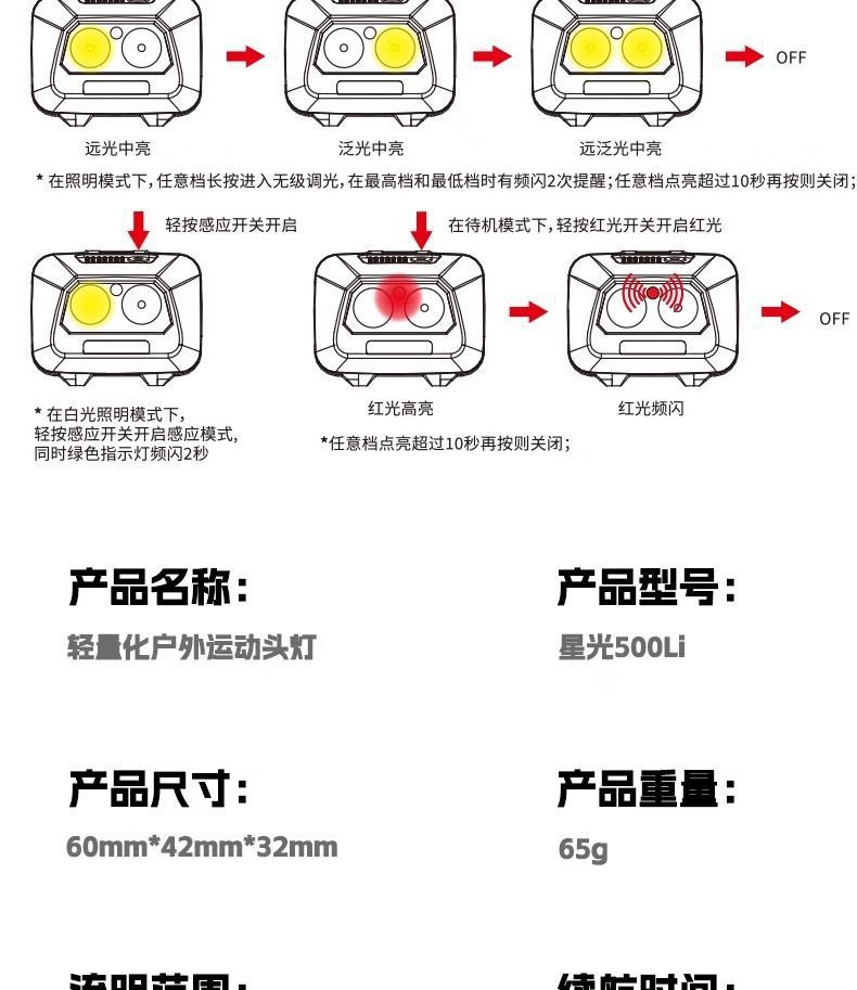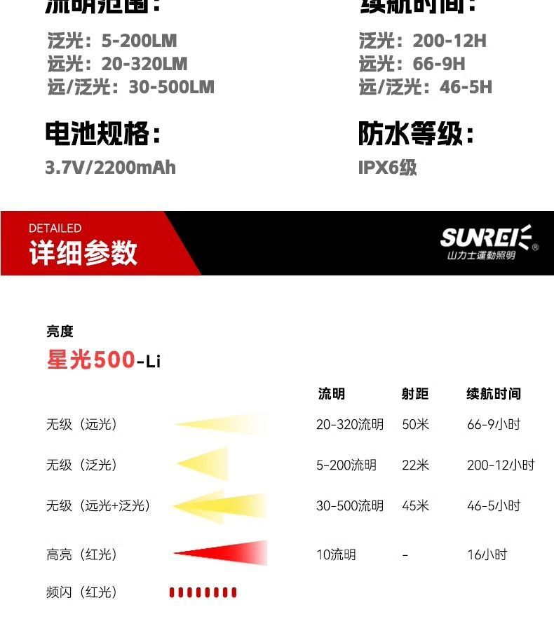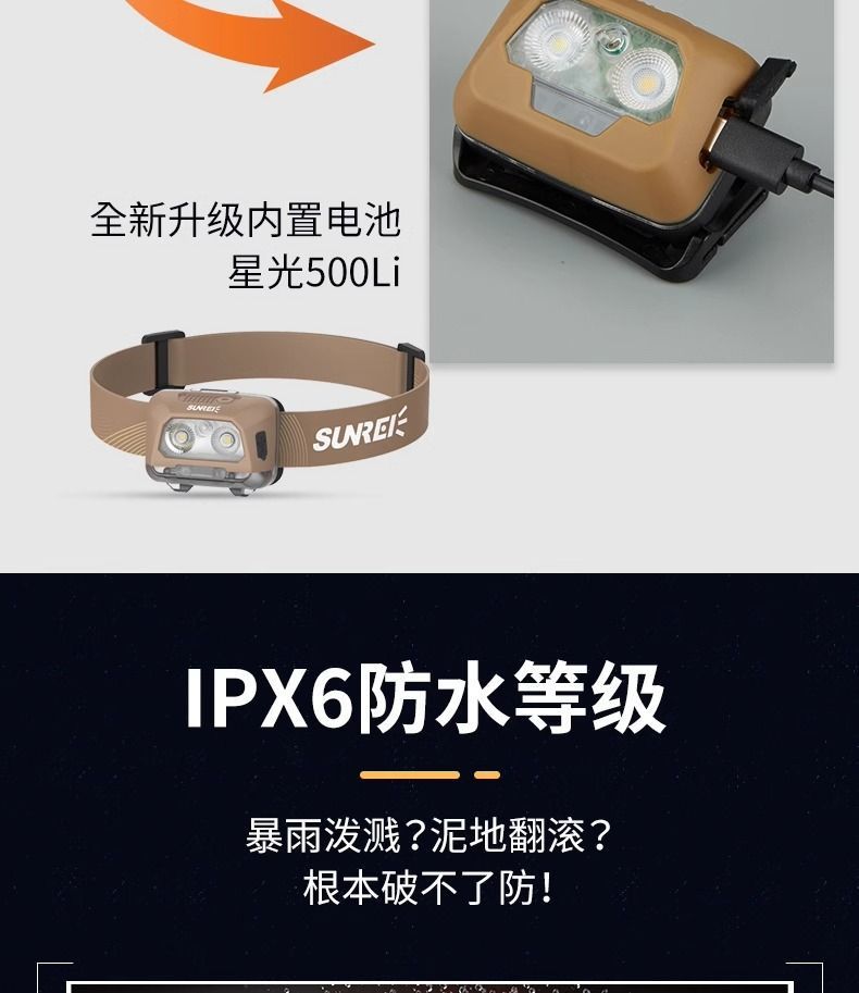 산리스 스타라이트 500 아웃도어 등산용 헤드램프, 하이킹, 등산, 방수, 낚시, 긴 배터리 수명