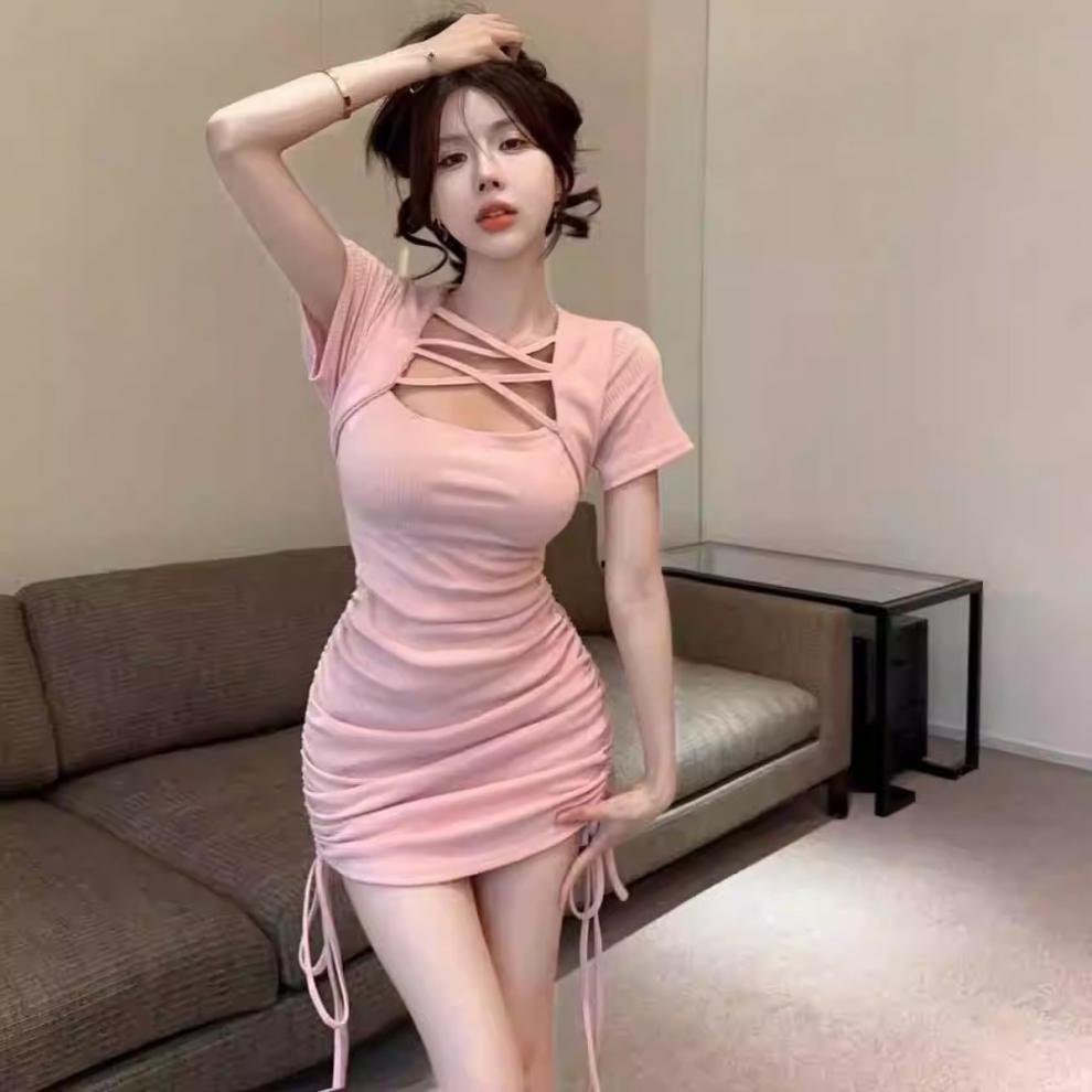 핫걸의 작은 사이즈 드로스트링 드레스, 슬림한 허리, 타이트한 스커트, 우아한 레이스업 학생 순수한 섹시 스타일 힙 스커트스토어 가기
