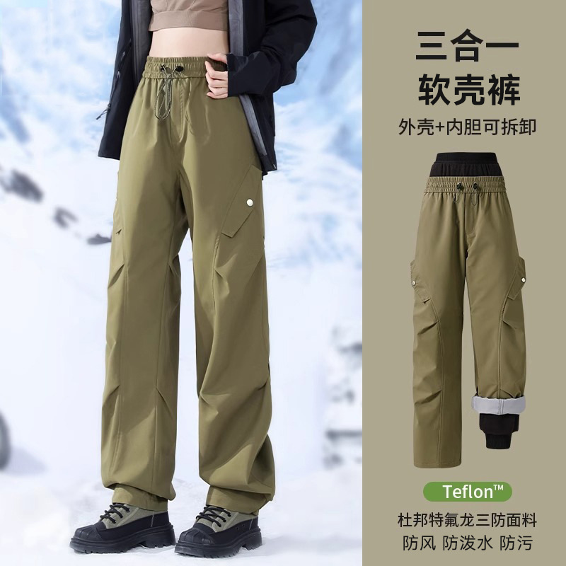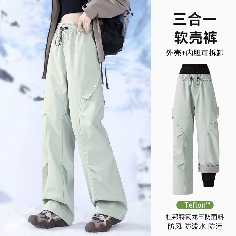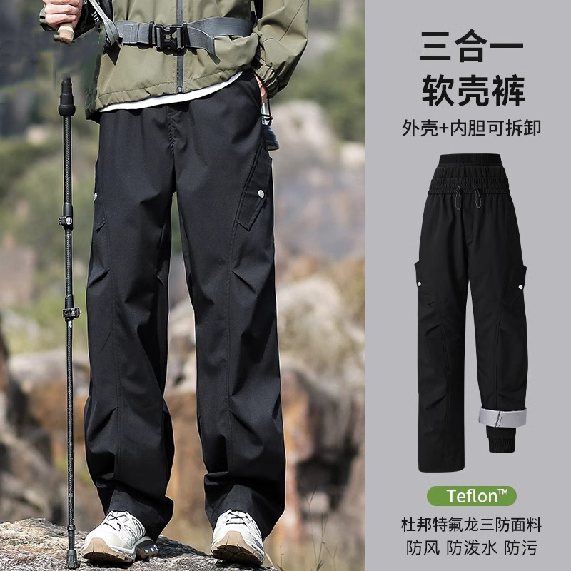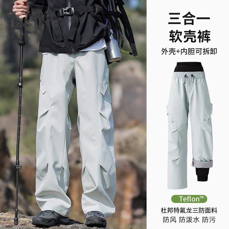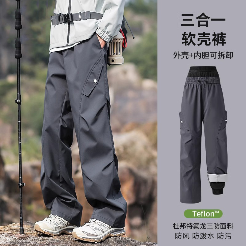 야외용 3-in-1 테프론 등산 바지 남녀공용 소프트쉘 바지 방풍 방수 보온 삼중 방수 스키 바지 작업복 바지스토어 가기