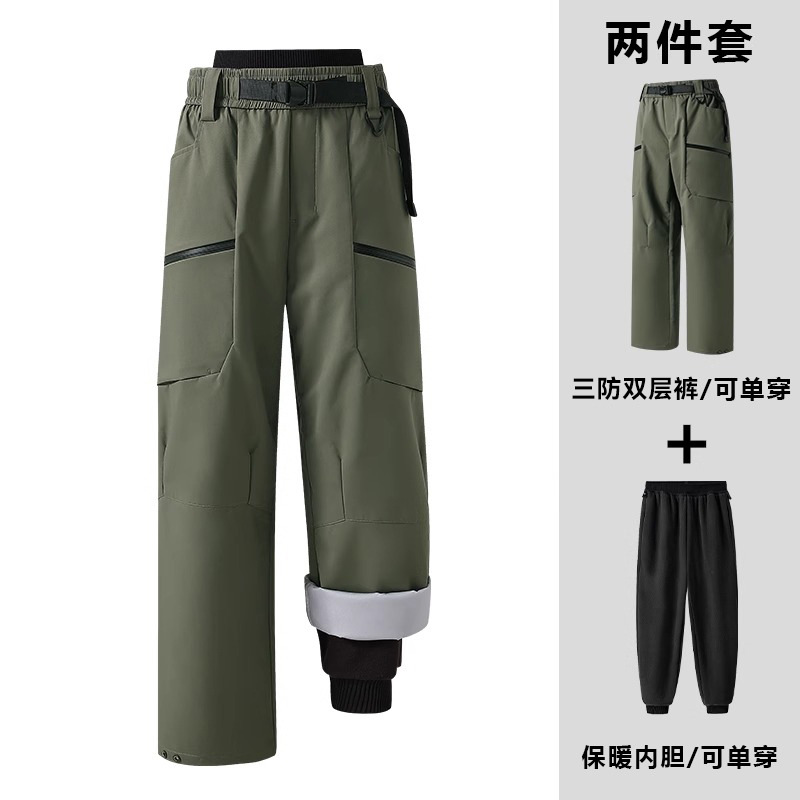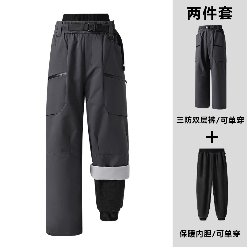 야외용 3-in-1 테프론 등산 바지 남녀공용 소프트쉘 바지 방풍 방수 보온 삼중 방수 스키 바지 작업복 바지